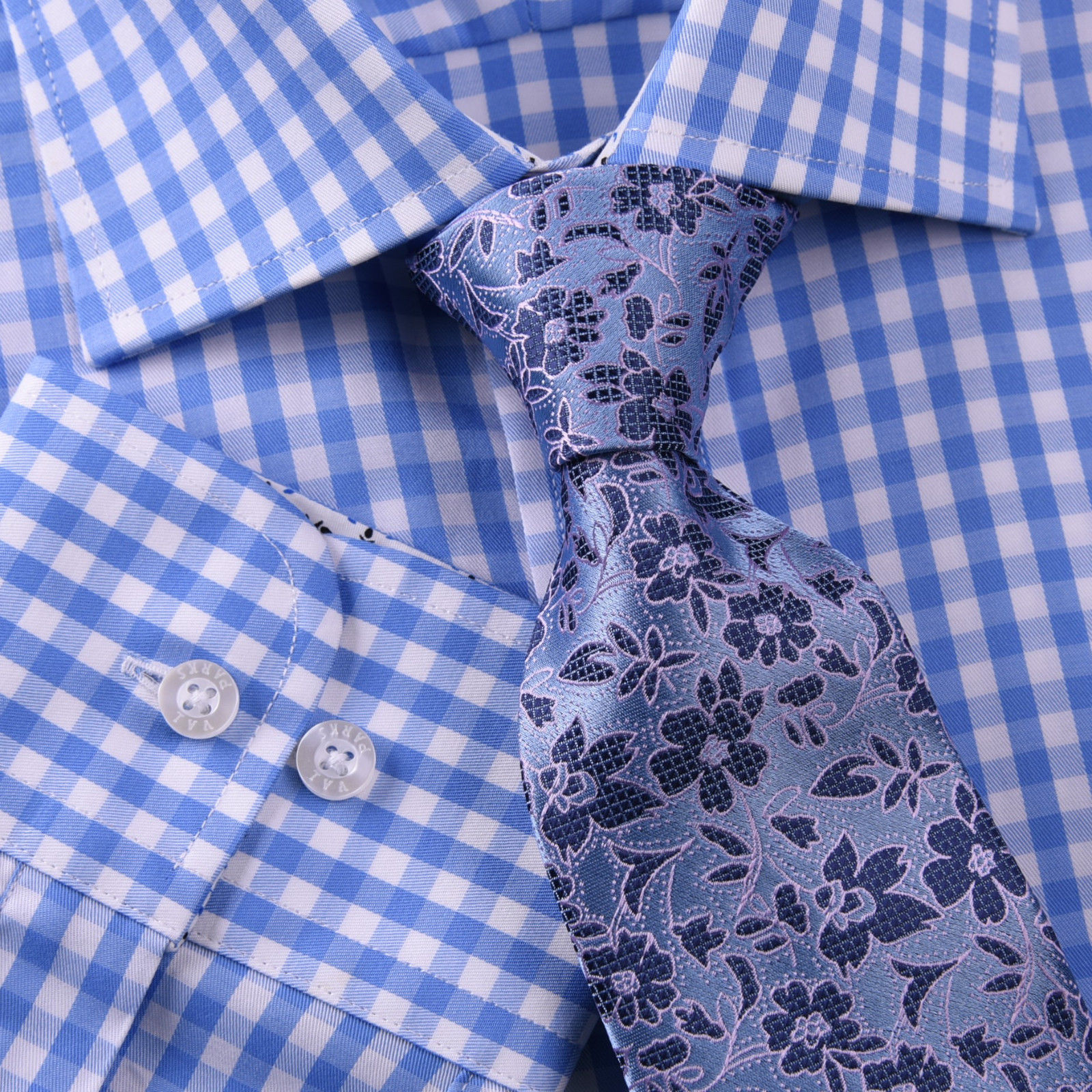 как выглядит Blue Gingham Check Formal SLIM Dress Shirt Subtle Plaids Windmill inner lining фото