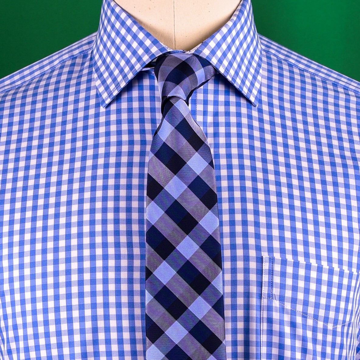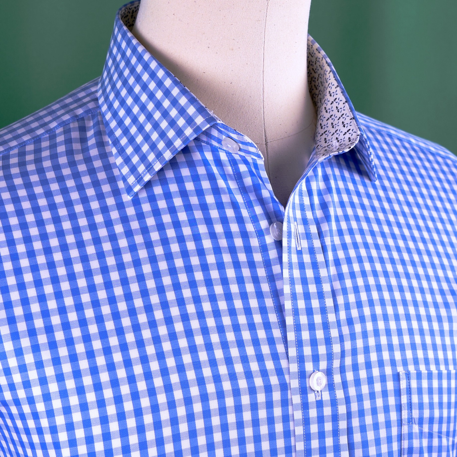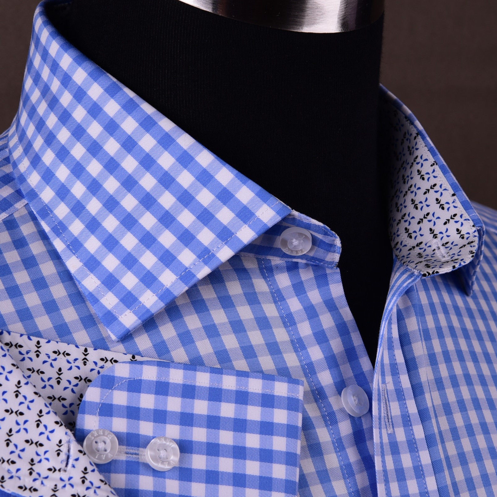 Blue Gingham Check Formal SLIM Dress Shirt Subtle Plaids Windmill inner lining