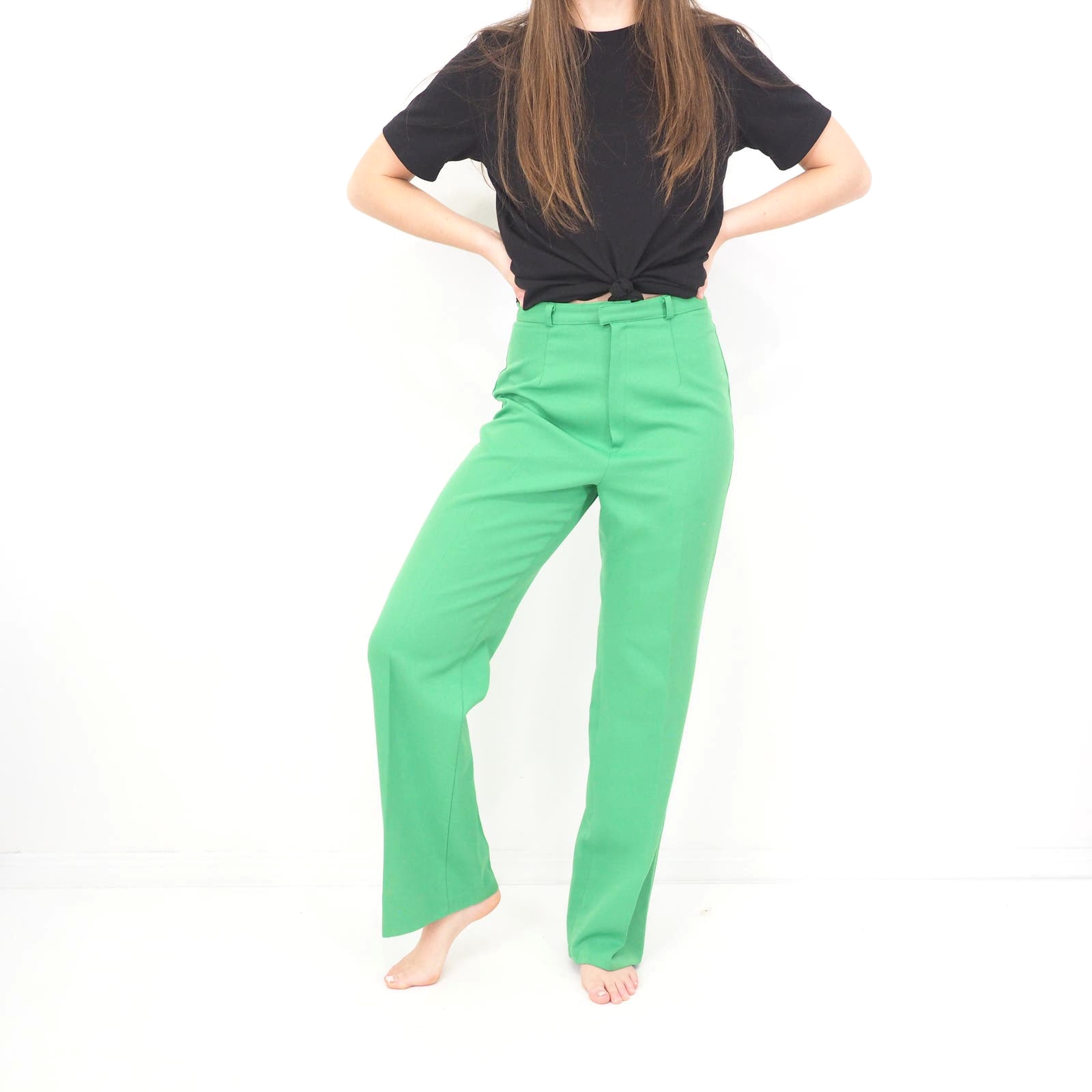 Salem 70s Vintage Green Trouser Slacks High Waisted Straight Leg Size 2 Waist 26