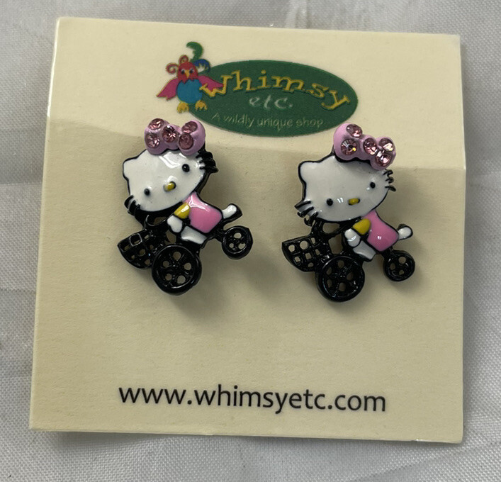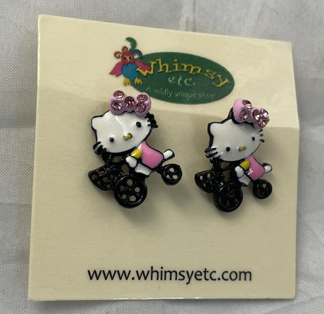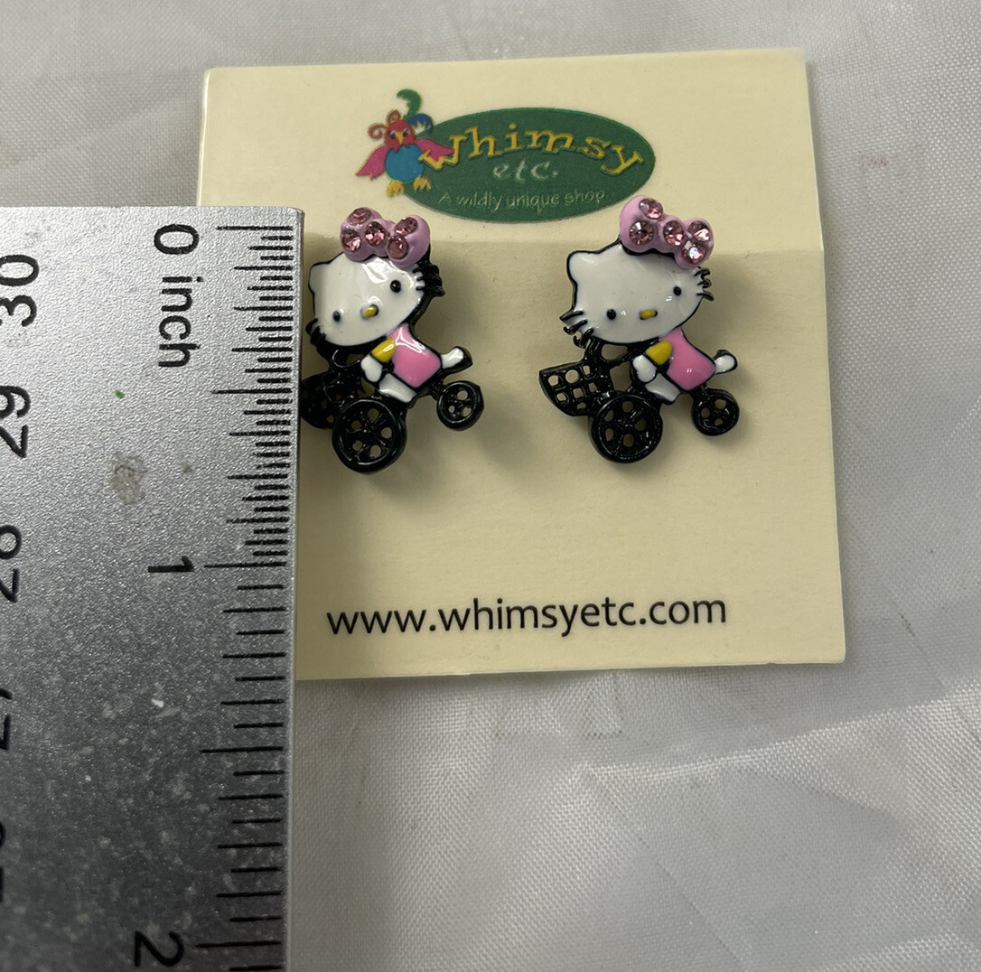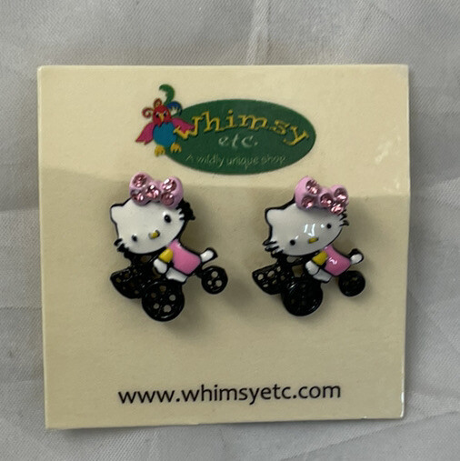 Hello Kitty On Bike Pink Bow Pierced Post Earrings NEW Children's Girl's