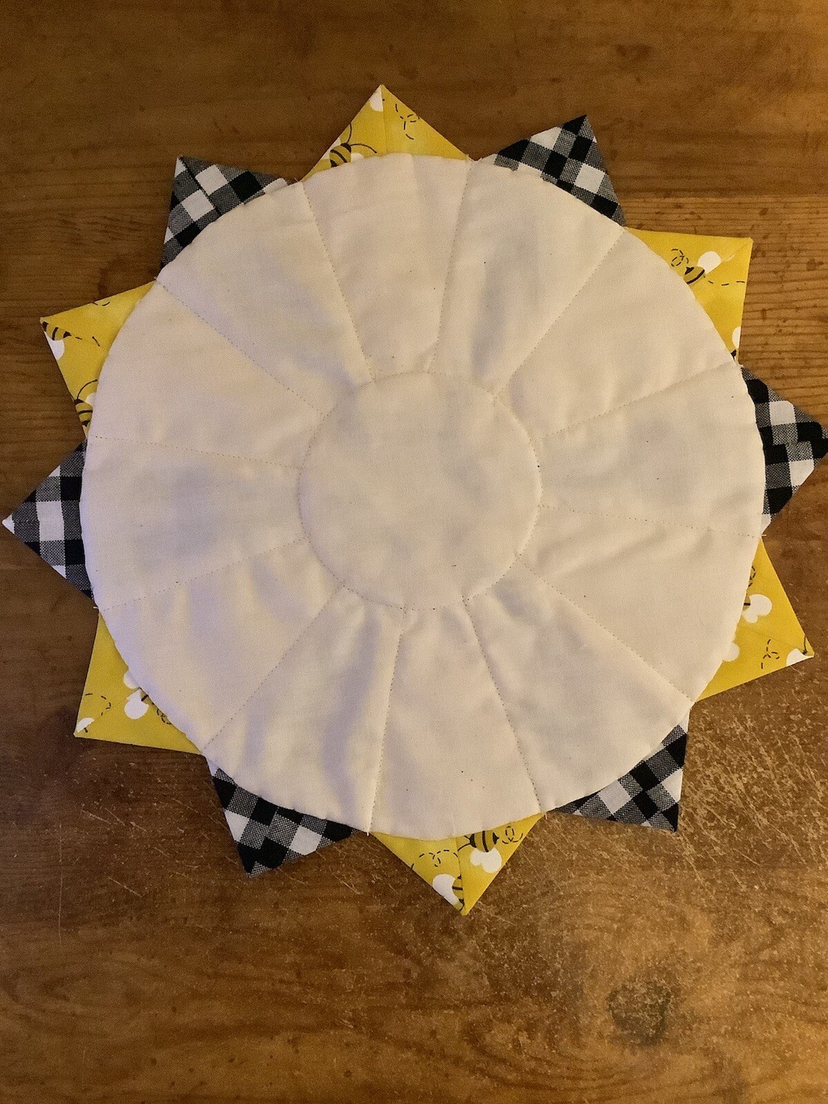 Handmade Quilted 12 Black White Homespun Bees Table Topper, Candle Mat,NEW