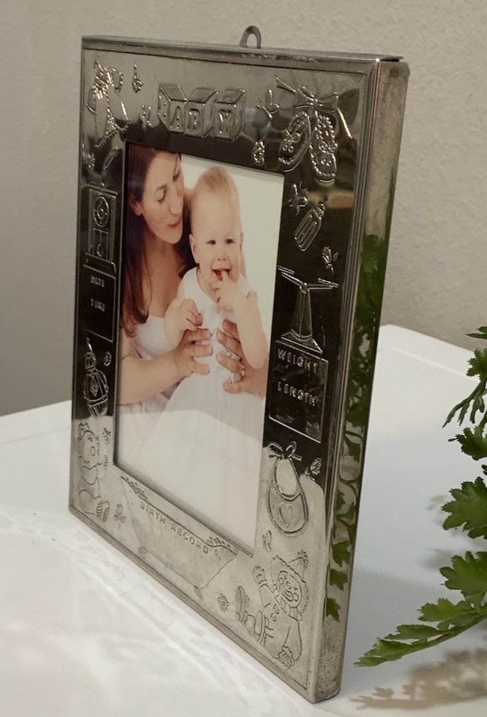 Vtg Silver Plate Engravable Date Wt Length Baby Photo Picture Frame 3.5 X 5