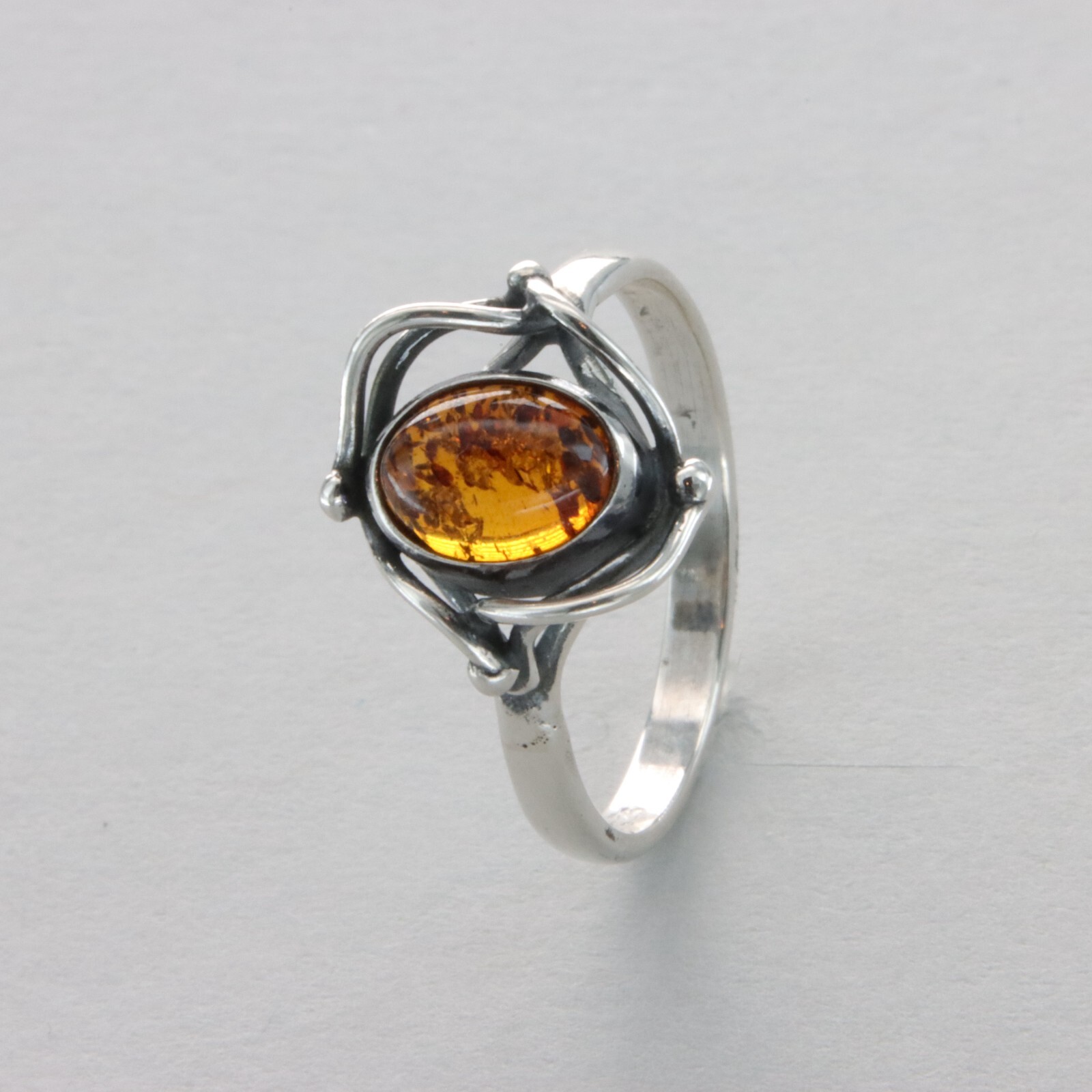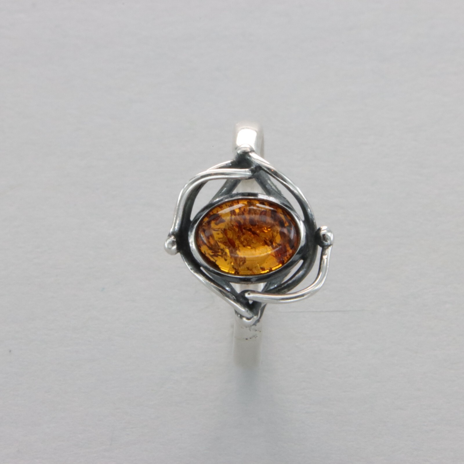 Oval Cognac / Brown BALTIC AMBER Ring - 925 STERLING SILVER Poland 48e
