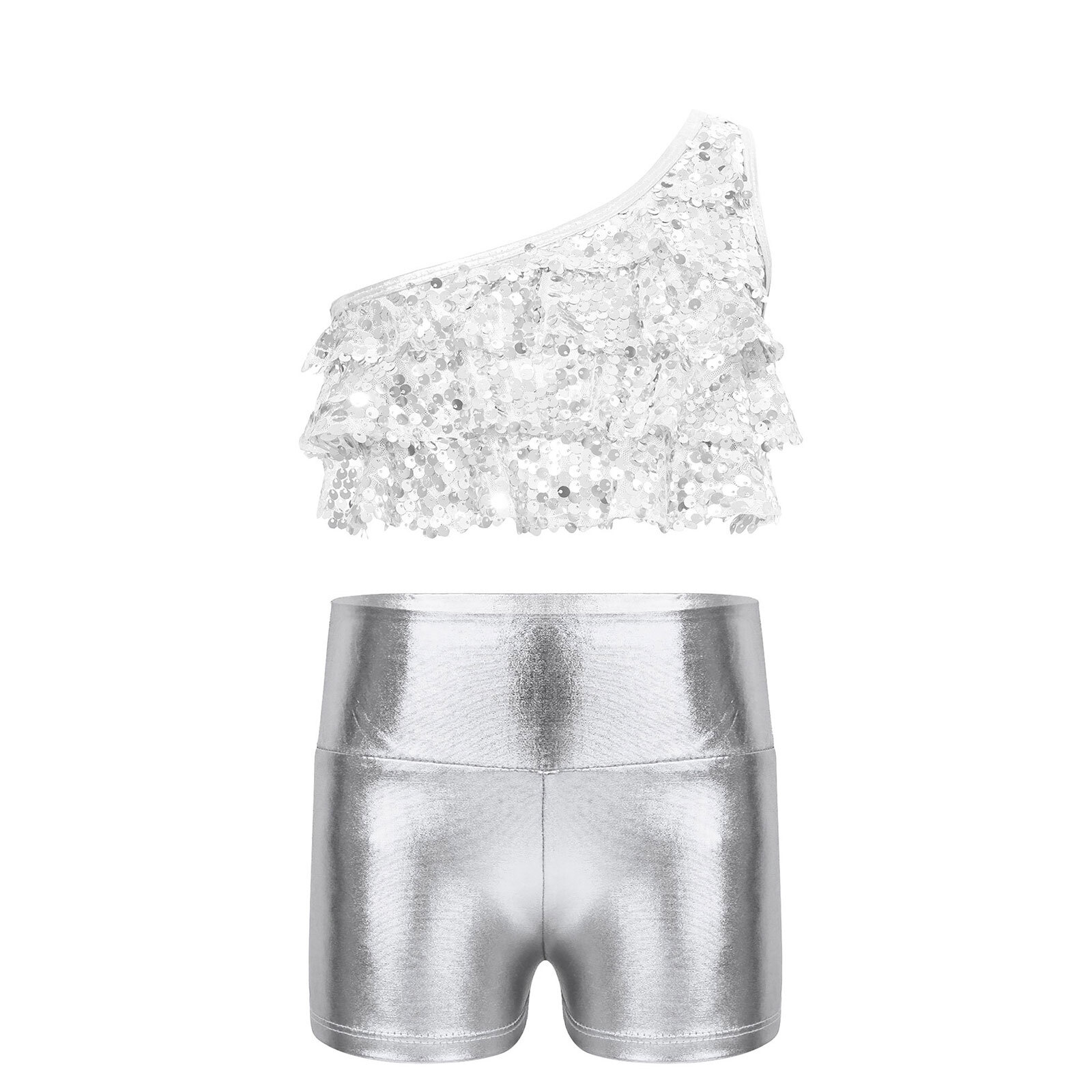 как выглядит Kids Girls Crop Top With Shorts Dance Vest And Bottoms Performance Outfit Jazz фото