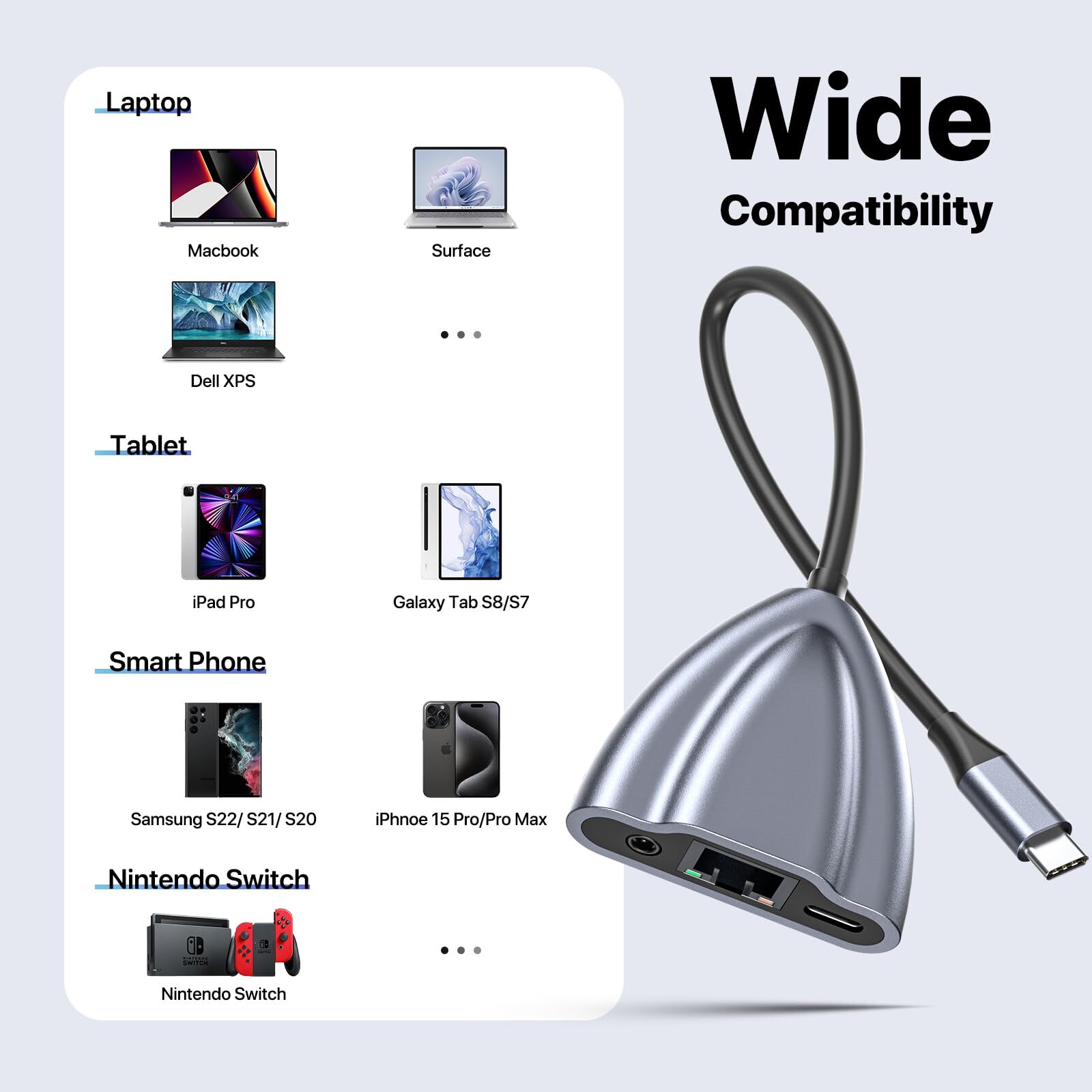 как выглядит USB C to Ethernet Adapter with Charging Port 1Gbps RJ45 to USB C Hub Ethernet... фото