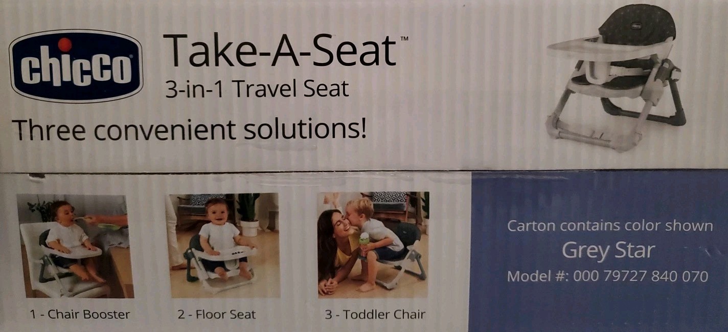 NEW CHICCO Take-A-Seat 3-in-1 Travel Seat 1-Chair Booster in GREY STAR