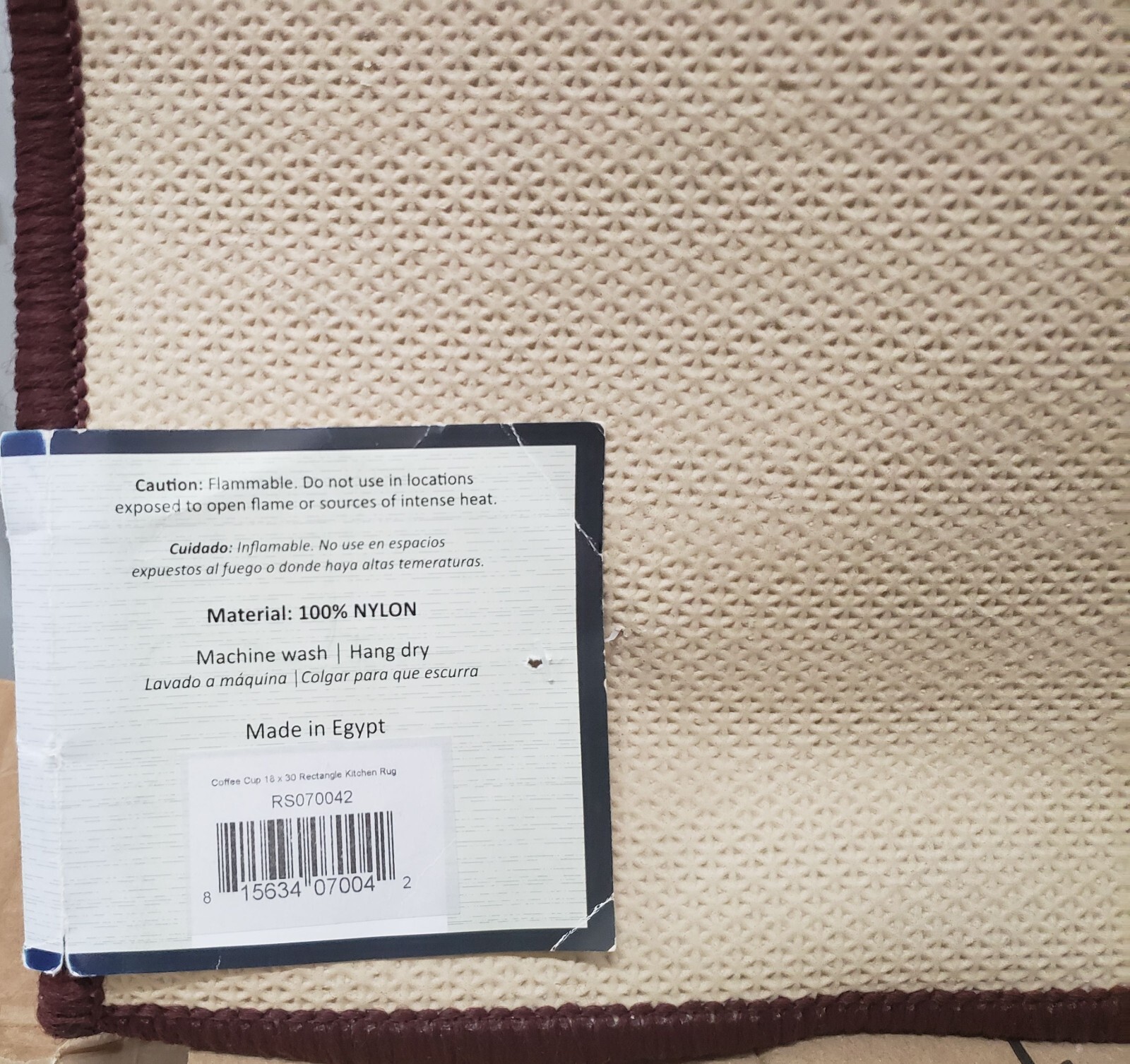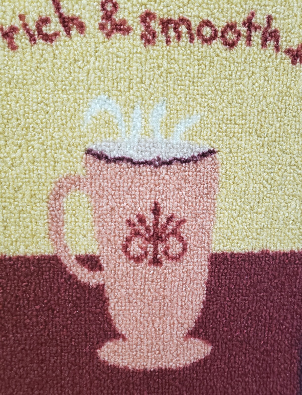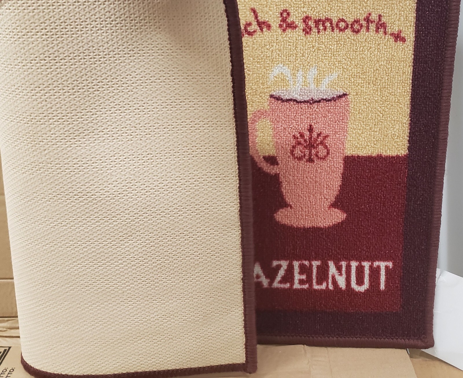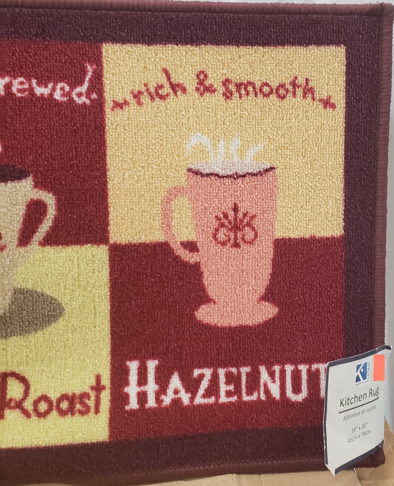 Printed Kitchen Nylon Rug nonskid 18x30 3 COFFEE TYPES CUPS, rectangle, KH