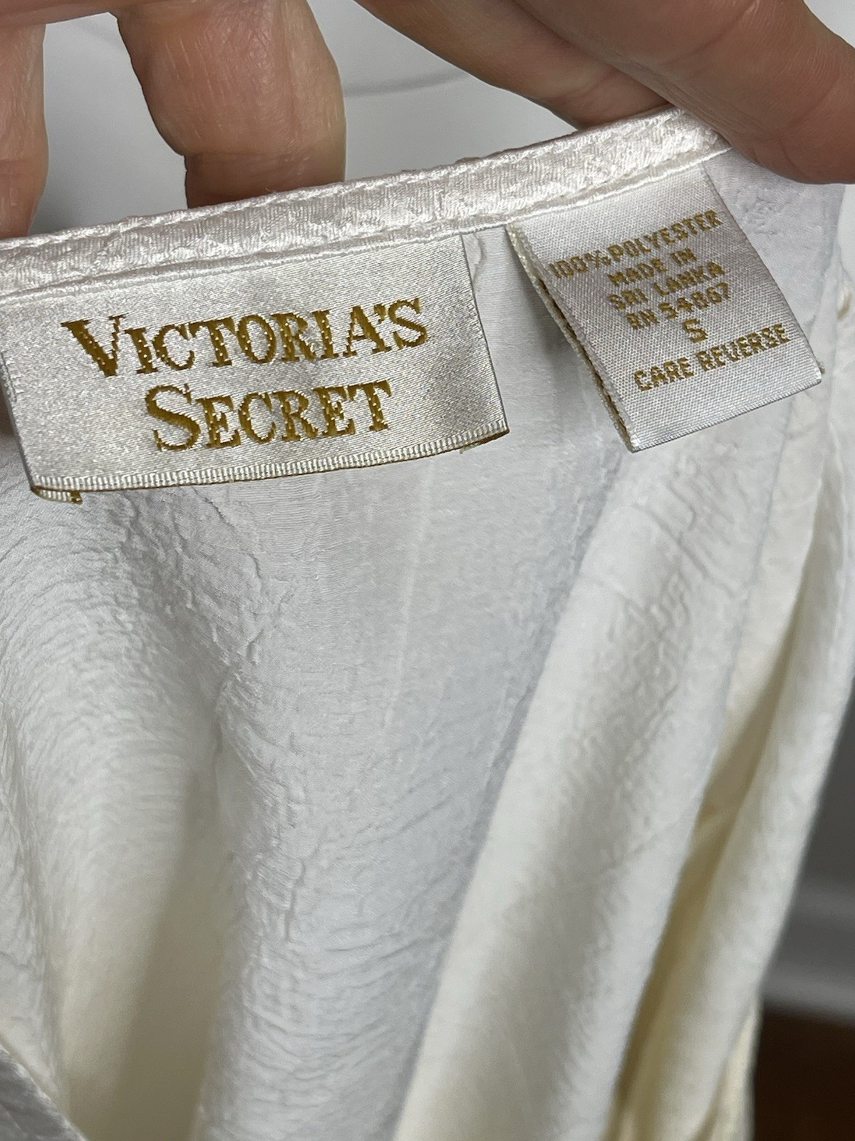 как выглядит Vintage Victorias Secret Gold Label Size small Lace Satin Pajama Top Ivory фото