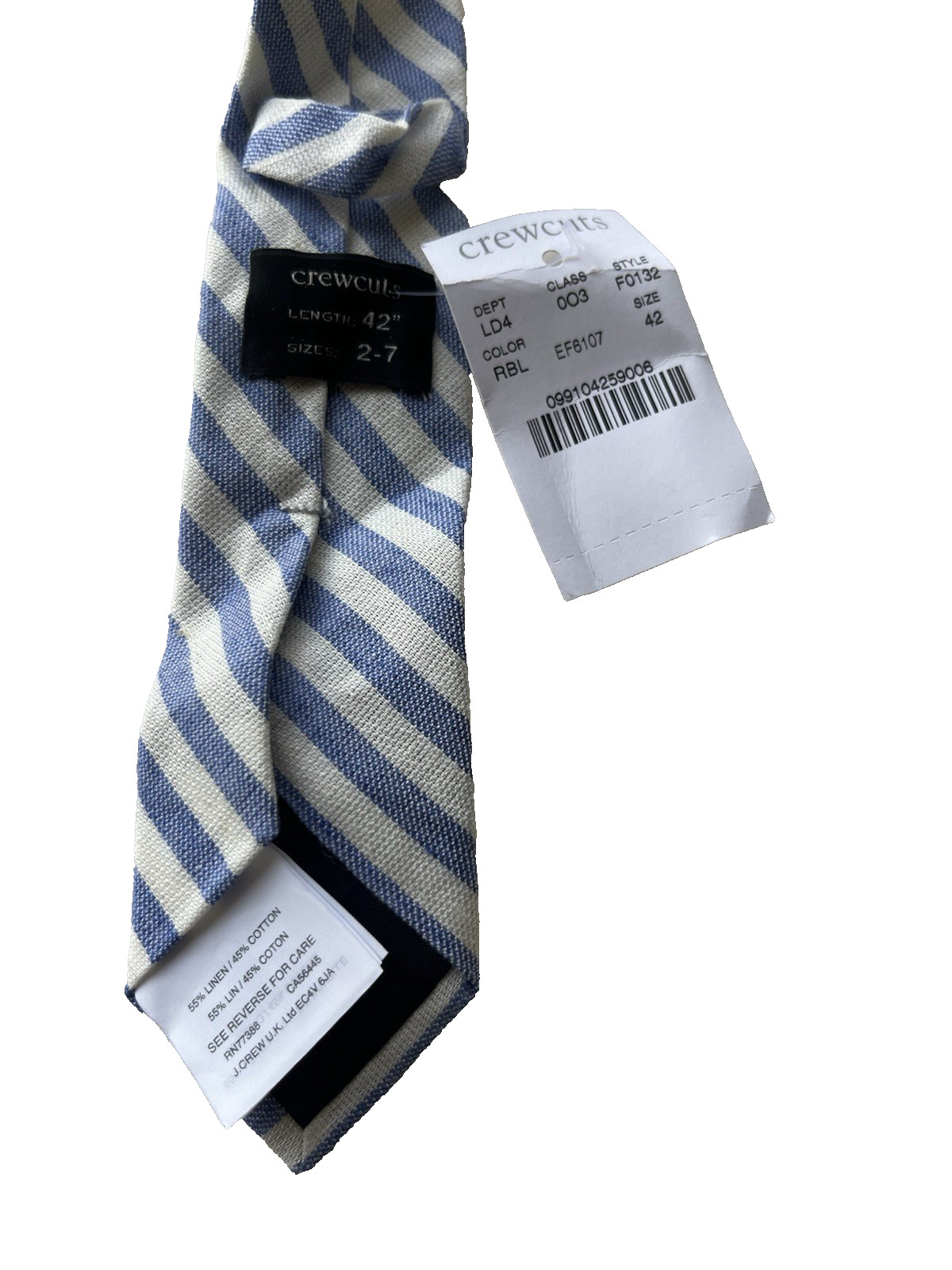 как выглядит NEW NWT J. CREW CREWCUTS BLUE WHITE STRIPED LINEN COTTON BOYS NECK TIE 2-7 YO фото