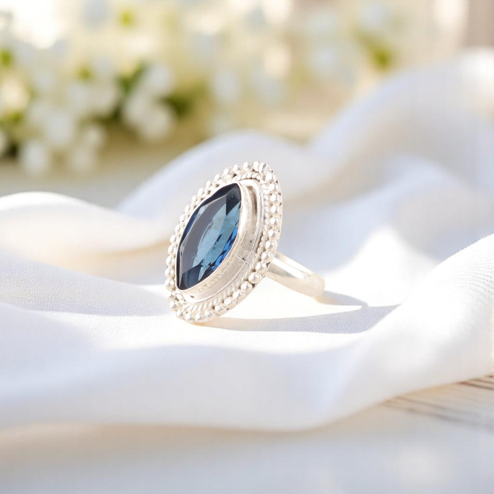 Genuine London Blue Topaz Gemstone 925 Stamped Silver Bohemian Jewelry Ring