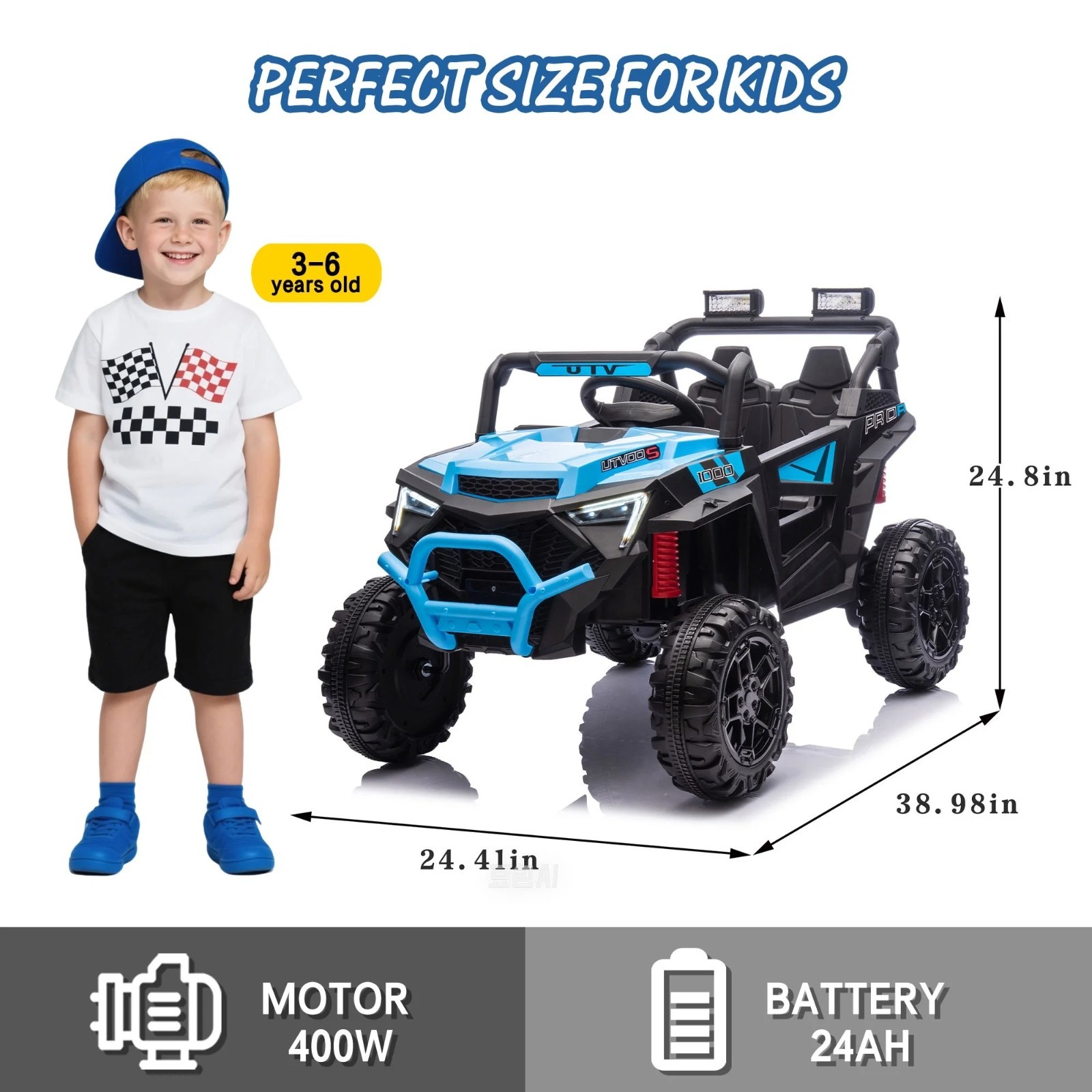 24V 400W Kids Ride On UTV Car Electric 4 Wheeler Off-Road Car with Remote Blue
