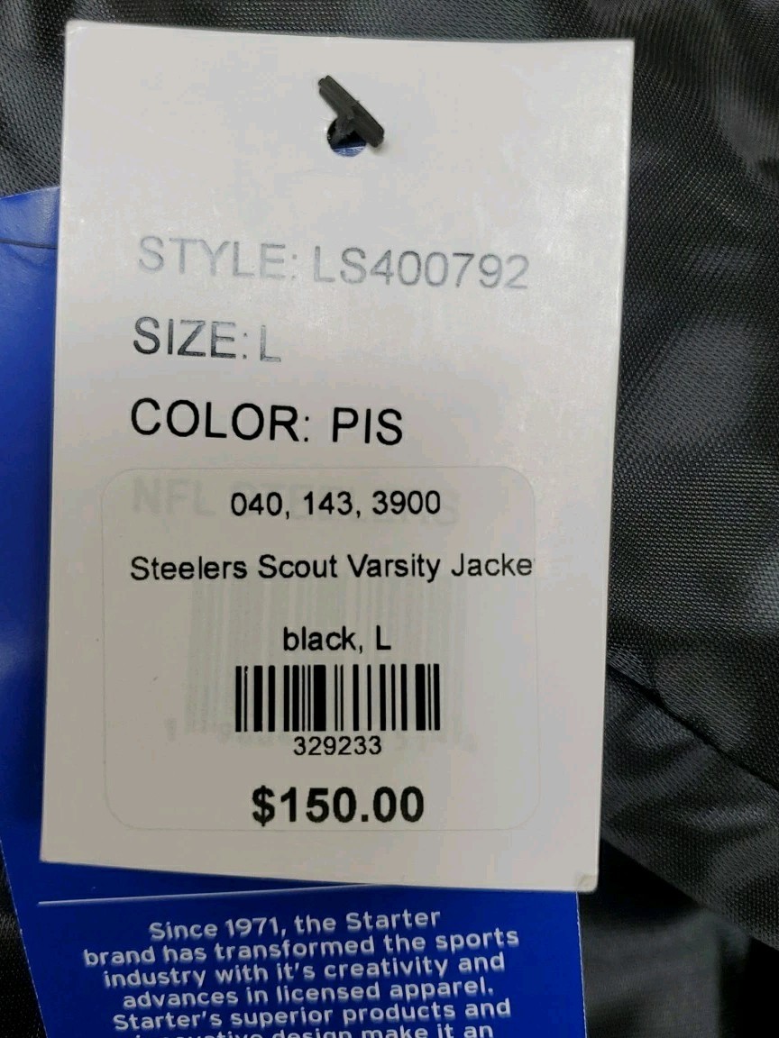 как выглядит New STARTER Pittsburgh Steelers Full Smap Varsity Jacket Black Size Large фото