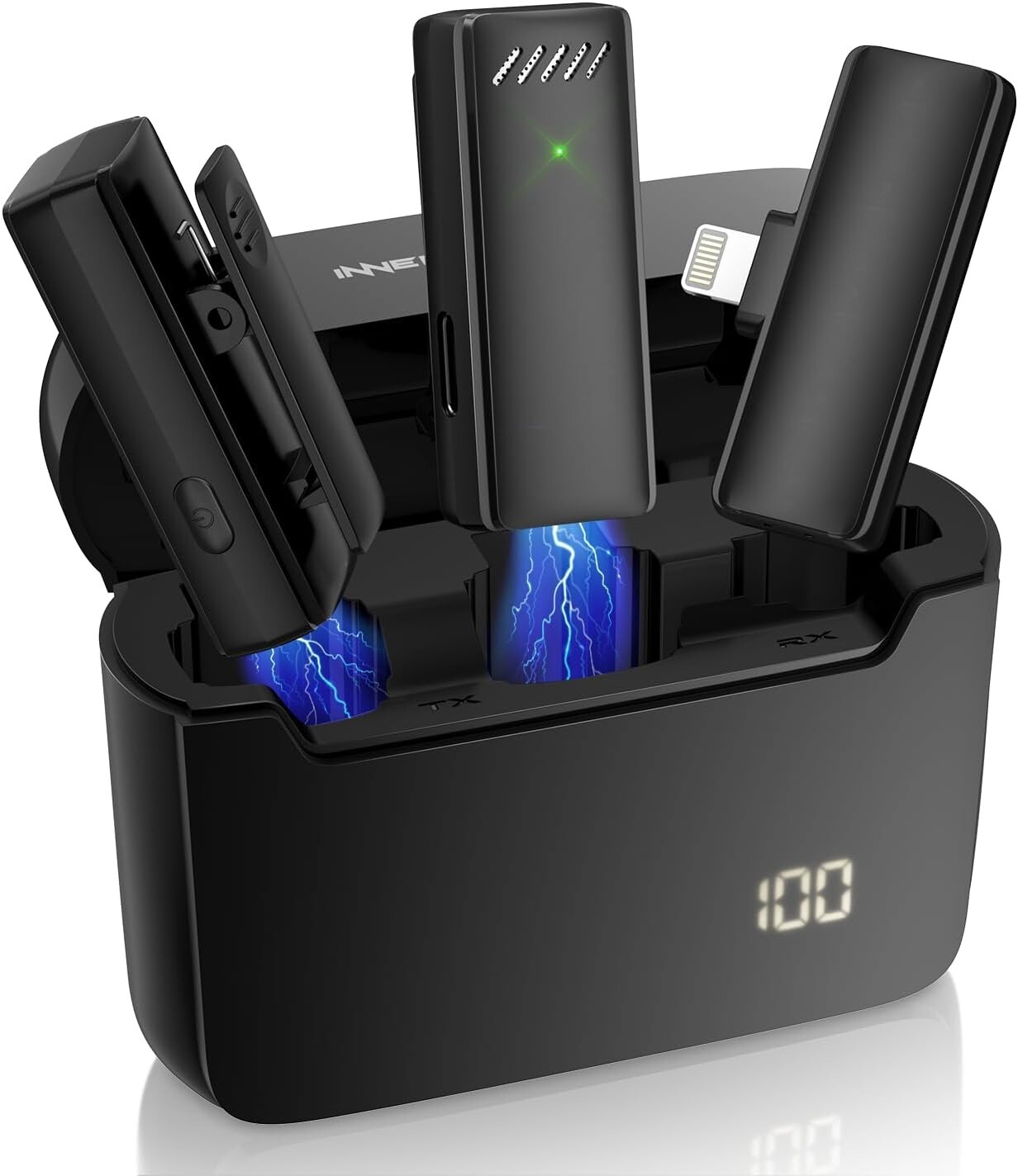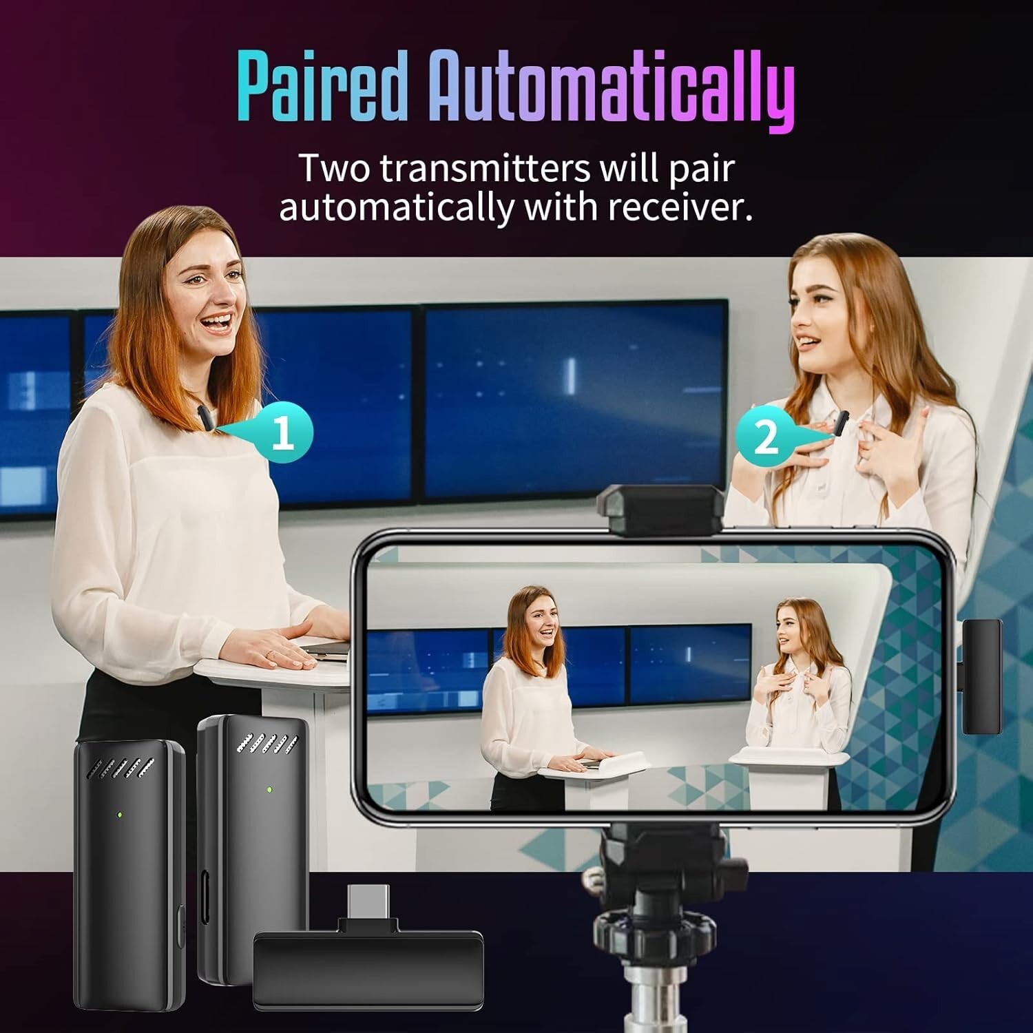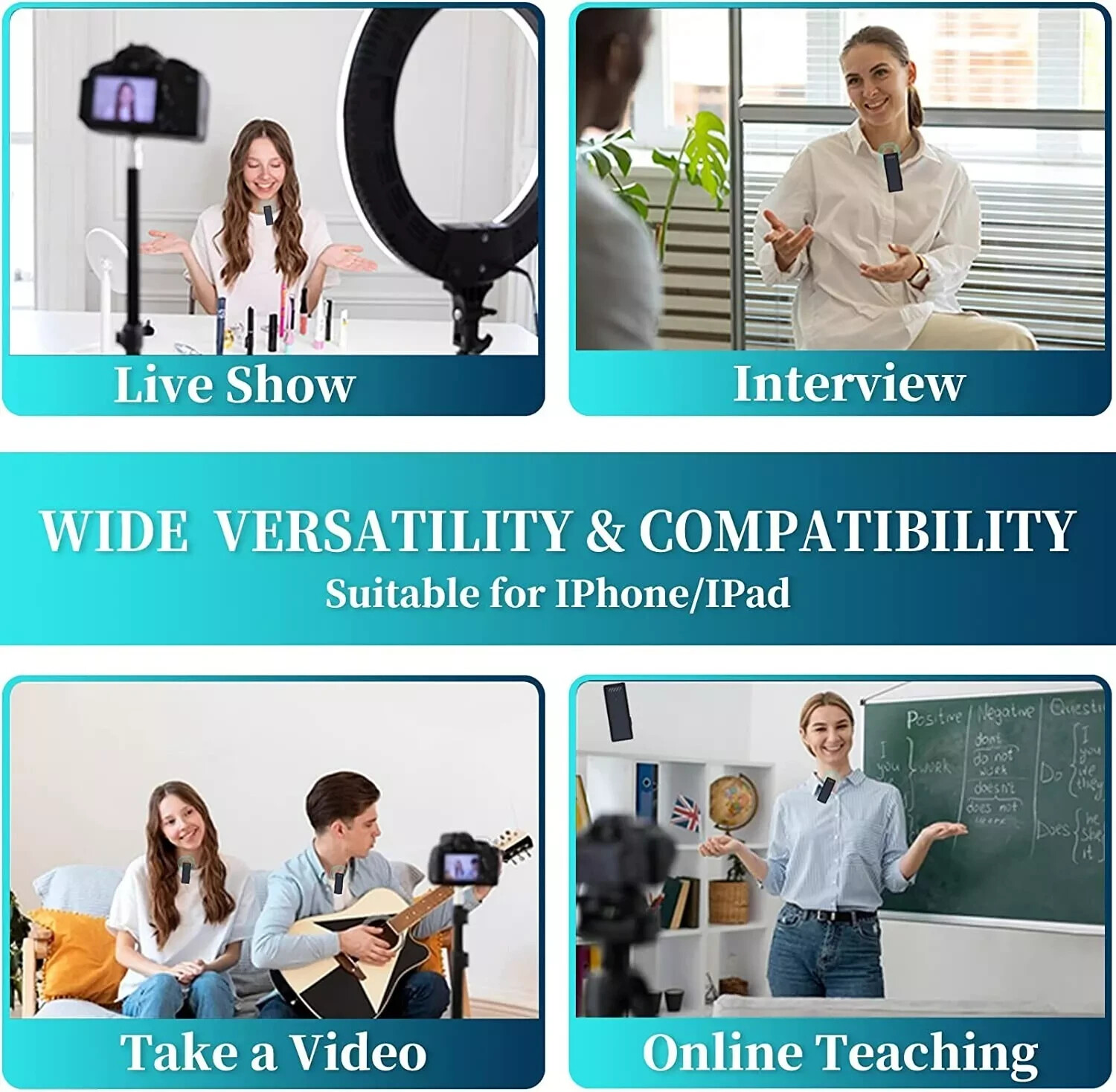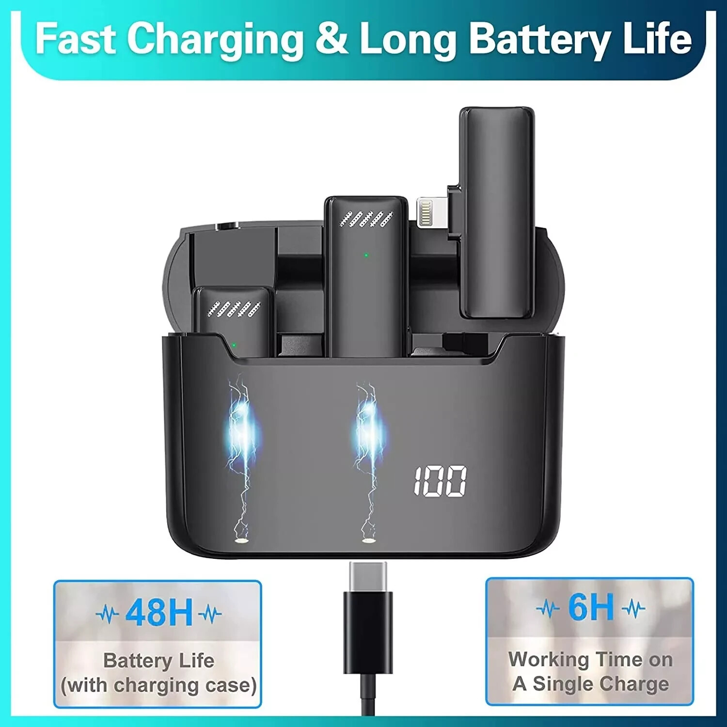 2 pc Professional Wireless Lavalier Microphone for iPhone iPad Charging Case Mic