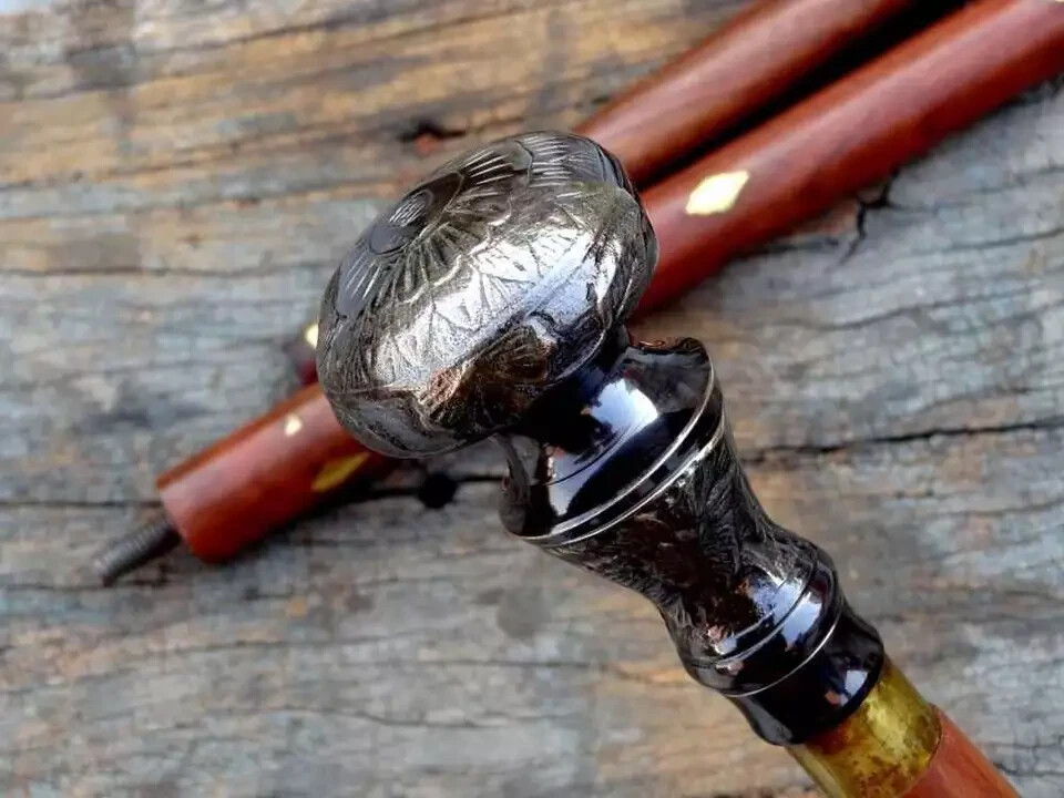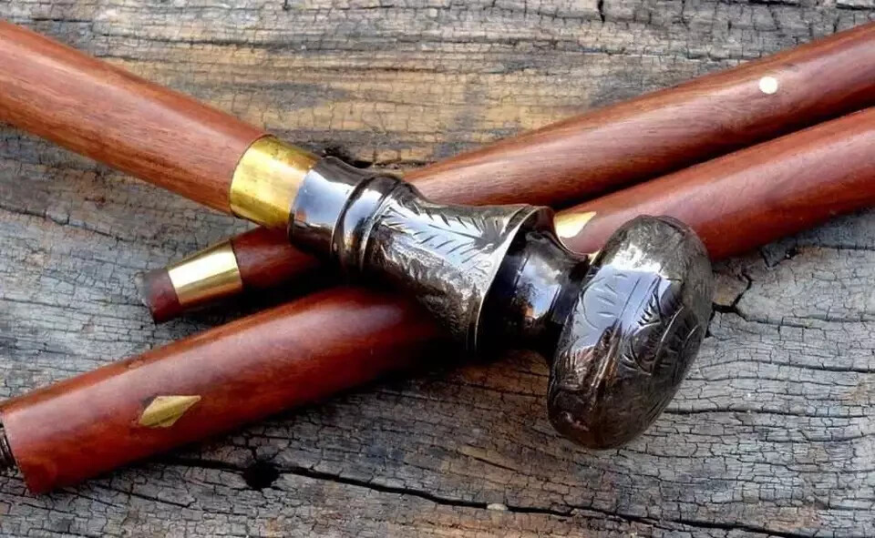 Antique Brass Knob Head Handle Designer Cane Vintage Wooden Walking Stick Gift