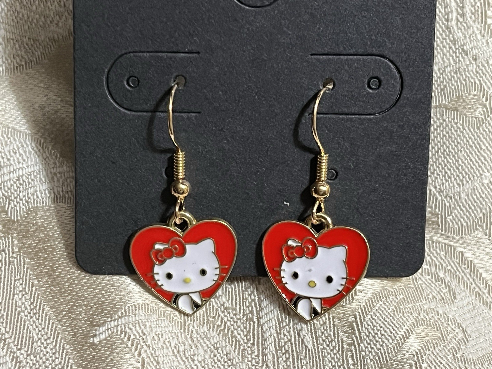 Hello Kitty Whimsical Heart Charm Gold Drop Dangle Adorable Fashion Earrings