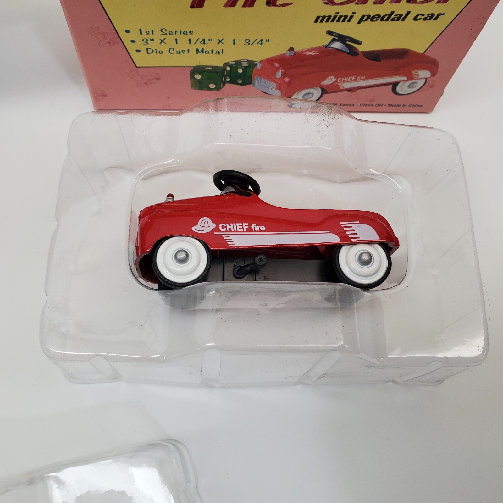 NOS Lot 3x Mini Pedal Cars Convertible, Taxi Cab, Fire Chief Collectible Toy