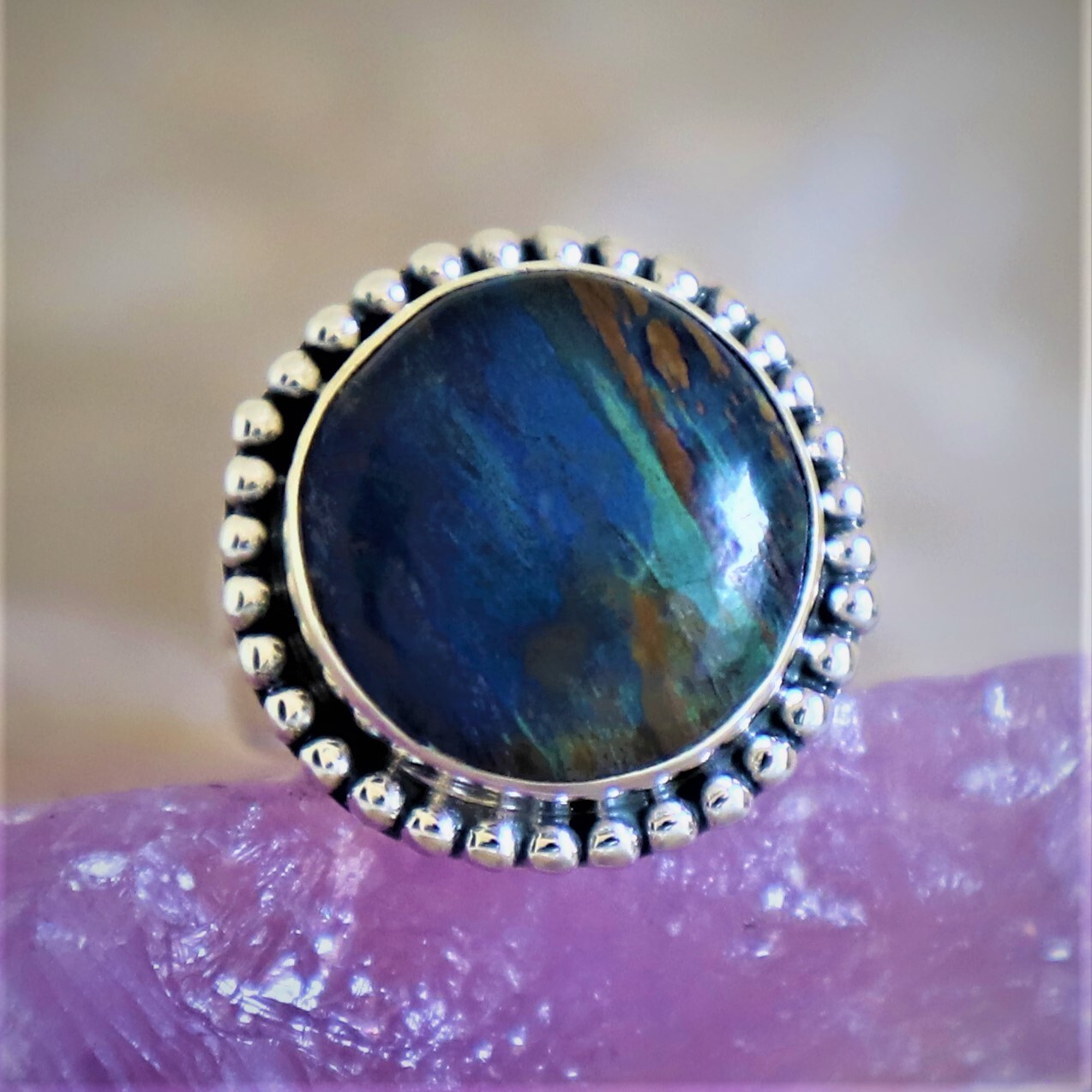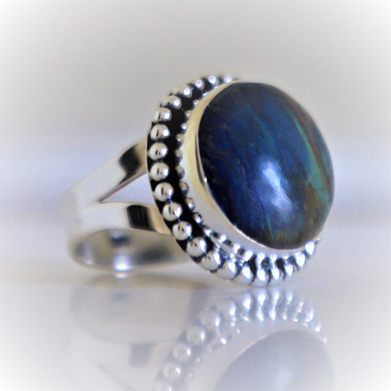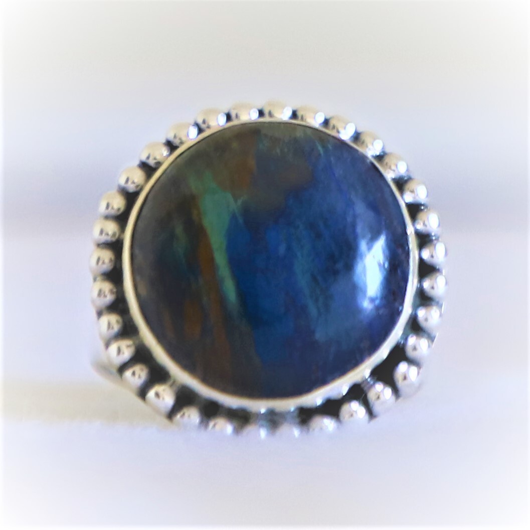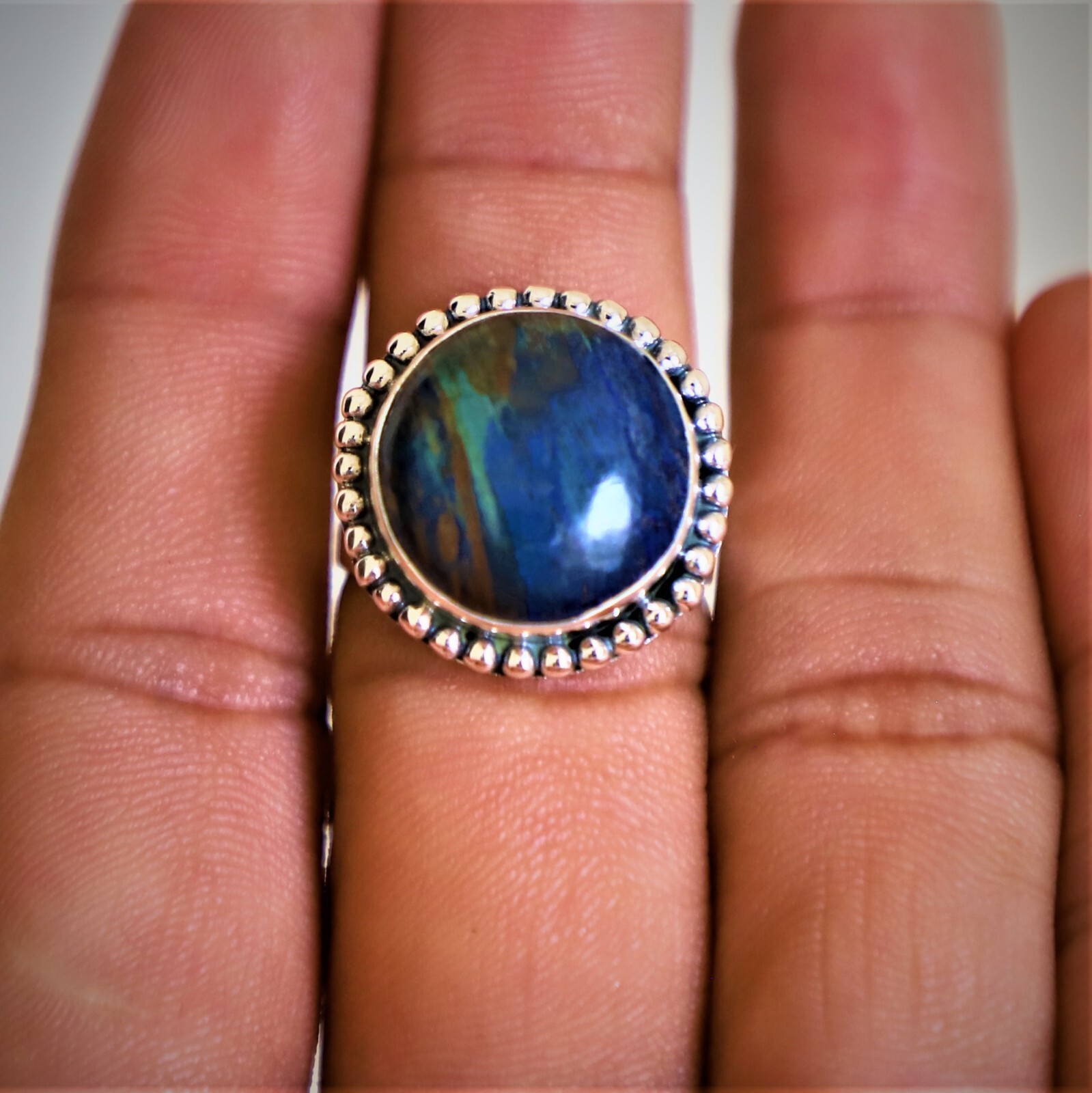как выглядит AZURITE RING NATURAL GEMSTONE 925 STERLING SILVER HANDMADE JEWELRY RING 3 to 12 фото