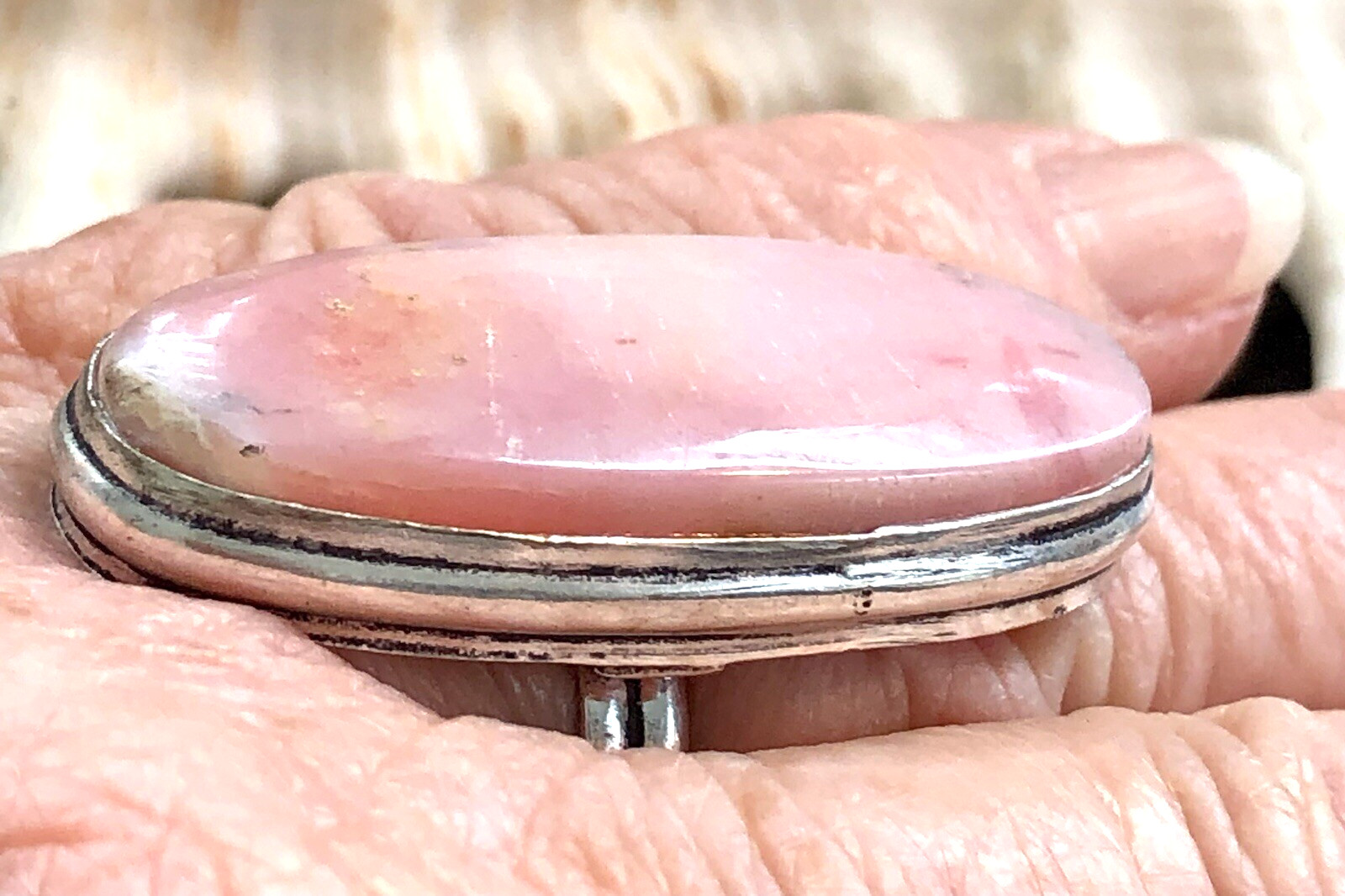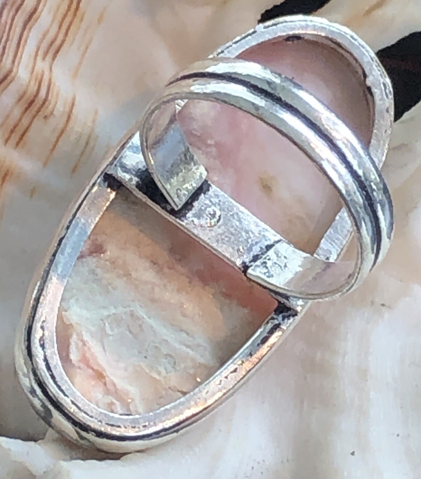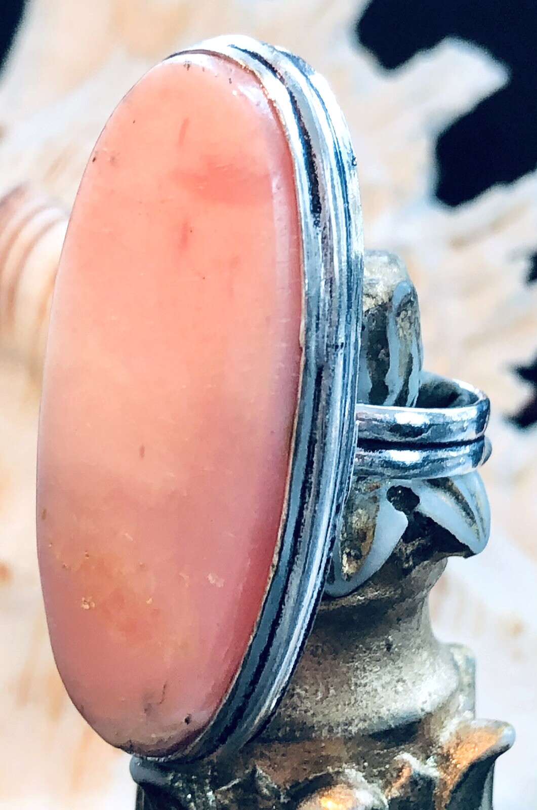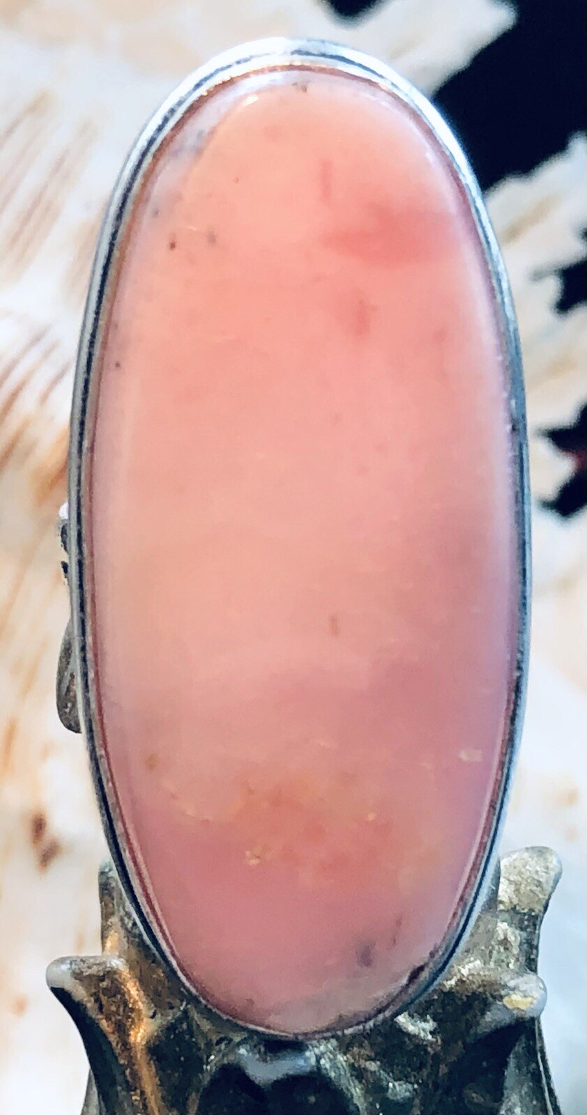 как выглядит LARGE 1 1/2" Natural Pink Peruvian Opal Ring Oval 925 Sterling Silver Size 7 фото