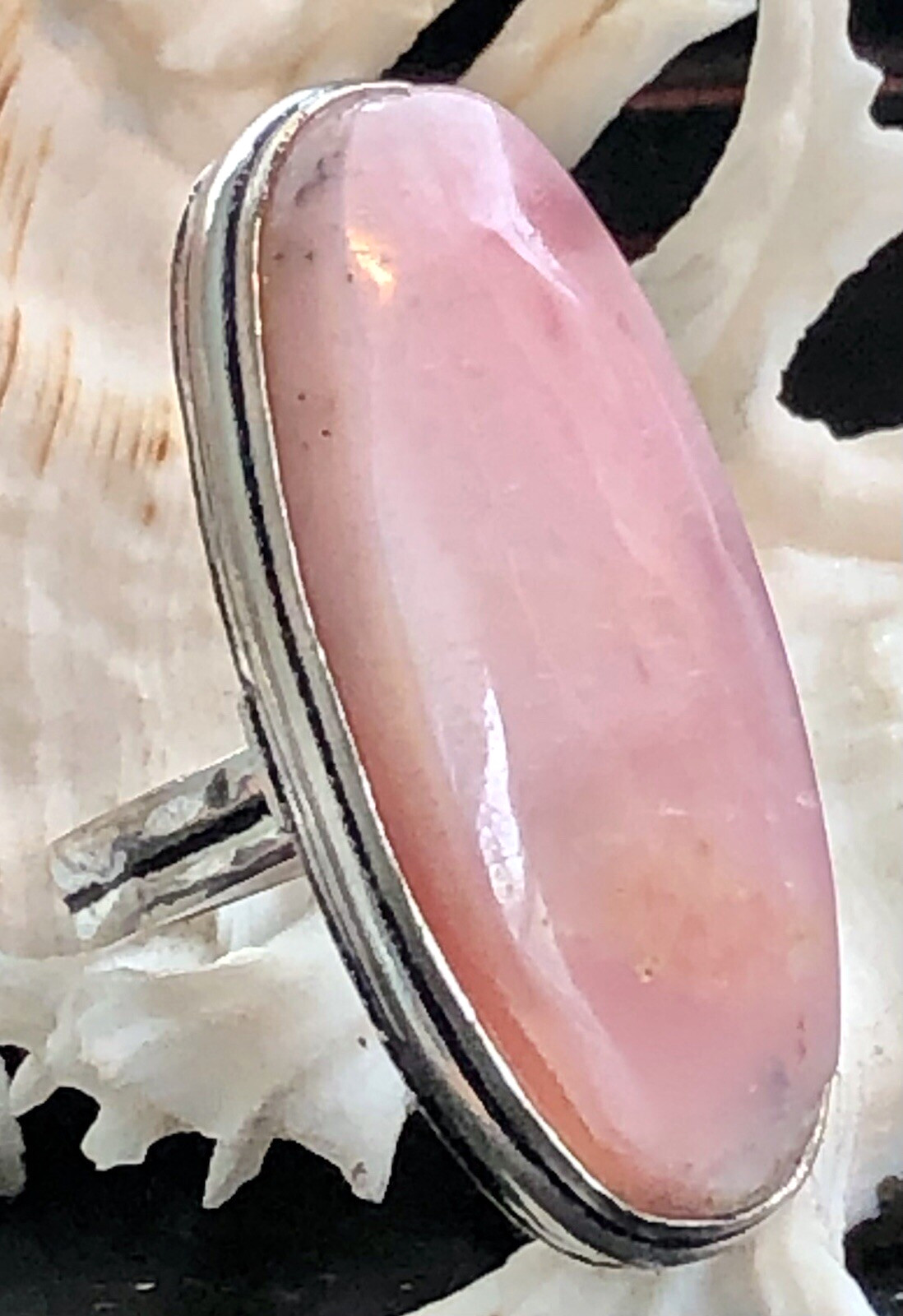 LARGE 1 1/2 Natural Pink Peruvian Opal Ring Oval 925 Sterling Silver Size 7