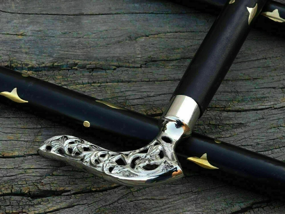 Antique Style Brass Handle Victorian Wooden Cane Walking Stick Fold Gift Replica