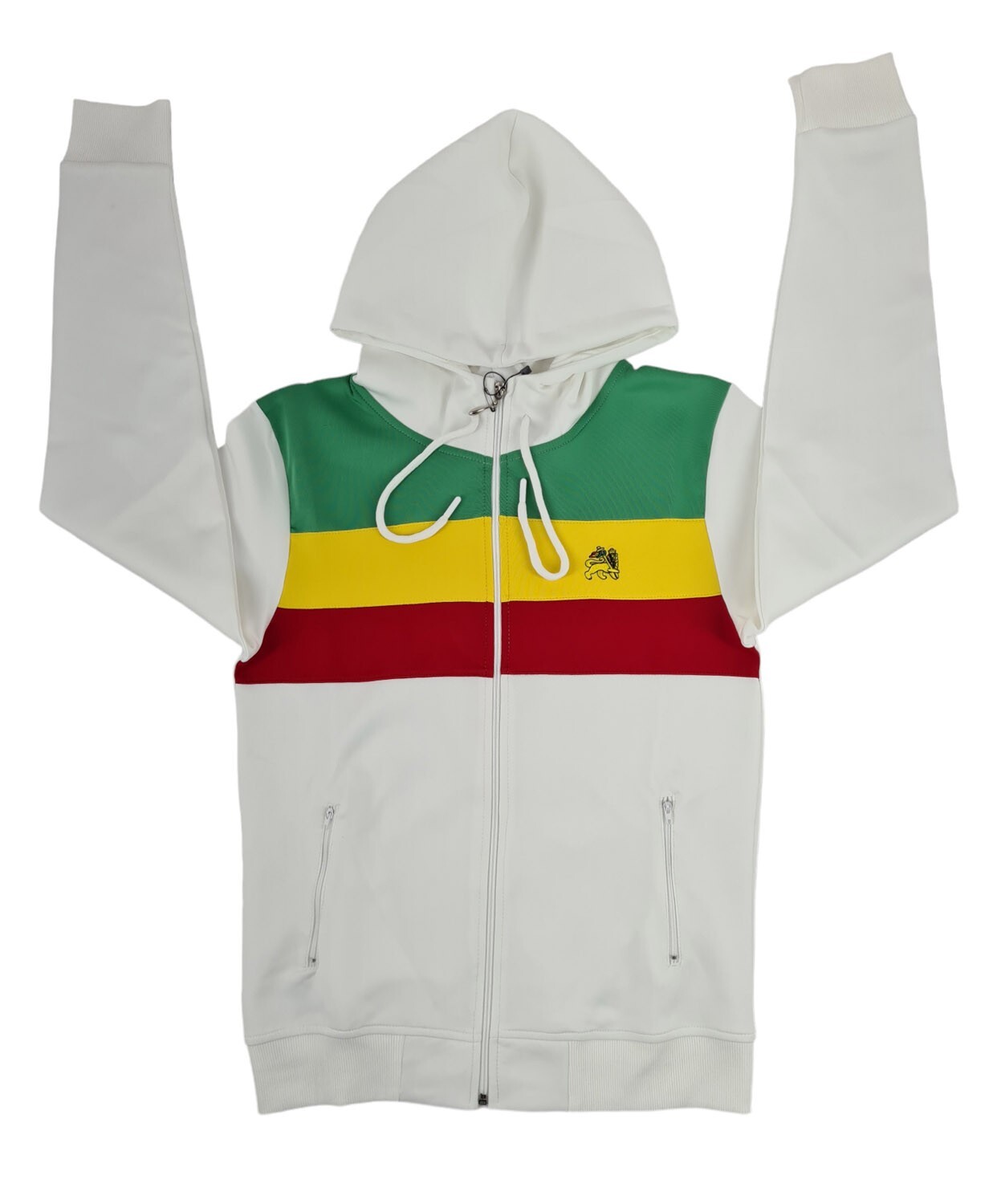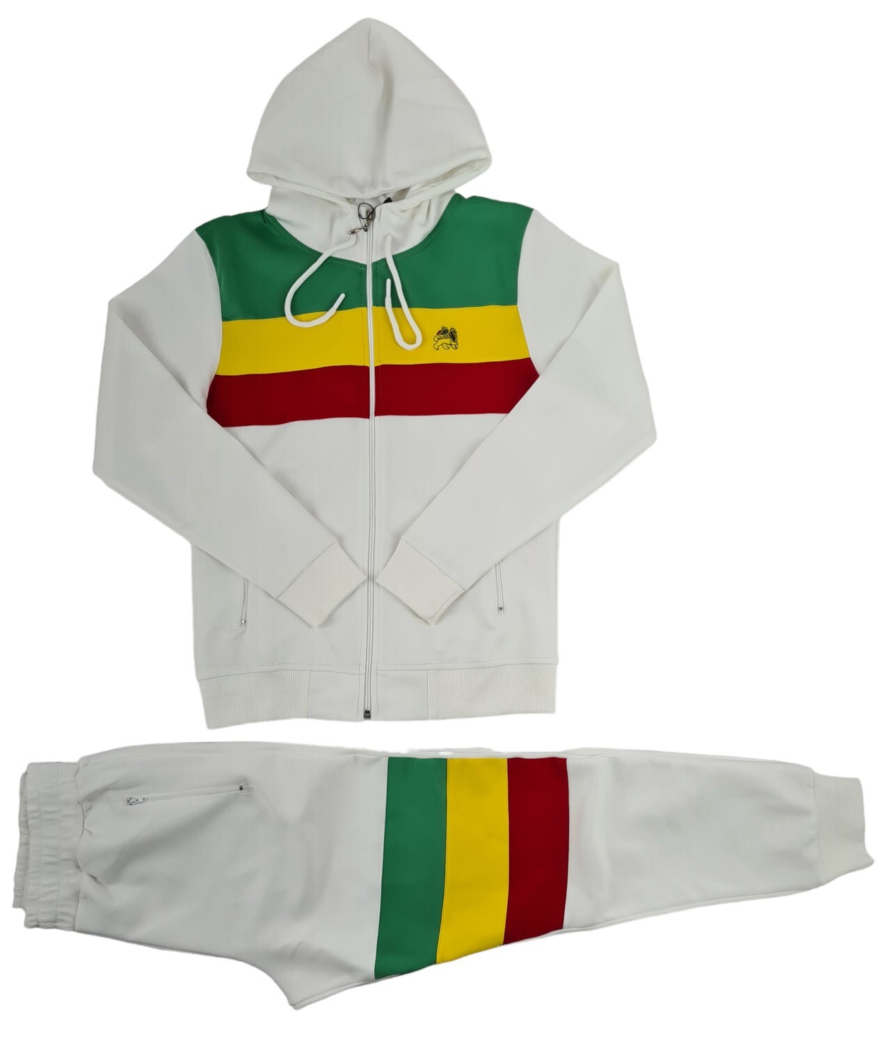 как выглядит Time Is Money Rasta Tracksuit Mens Full Zip Hoodie Joggers Set - Black/White фото