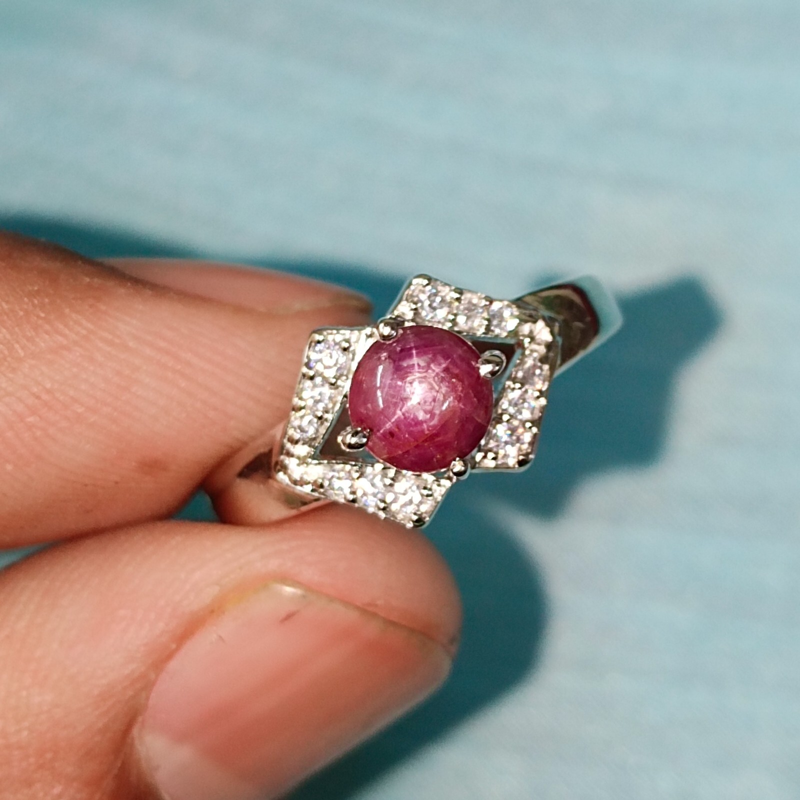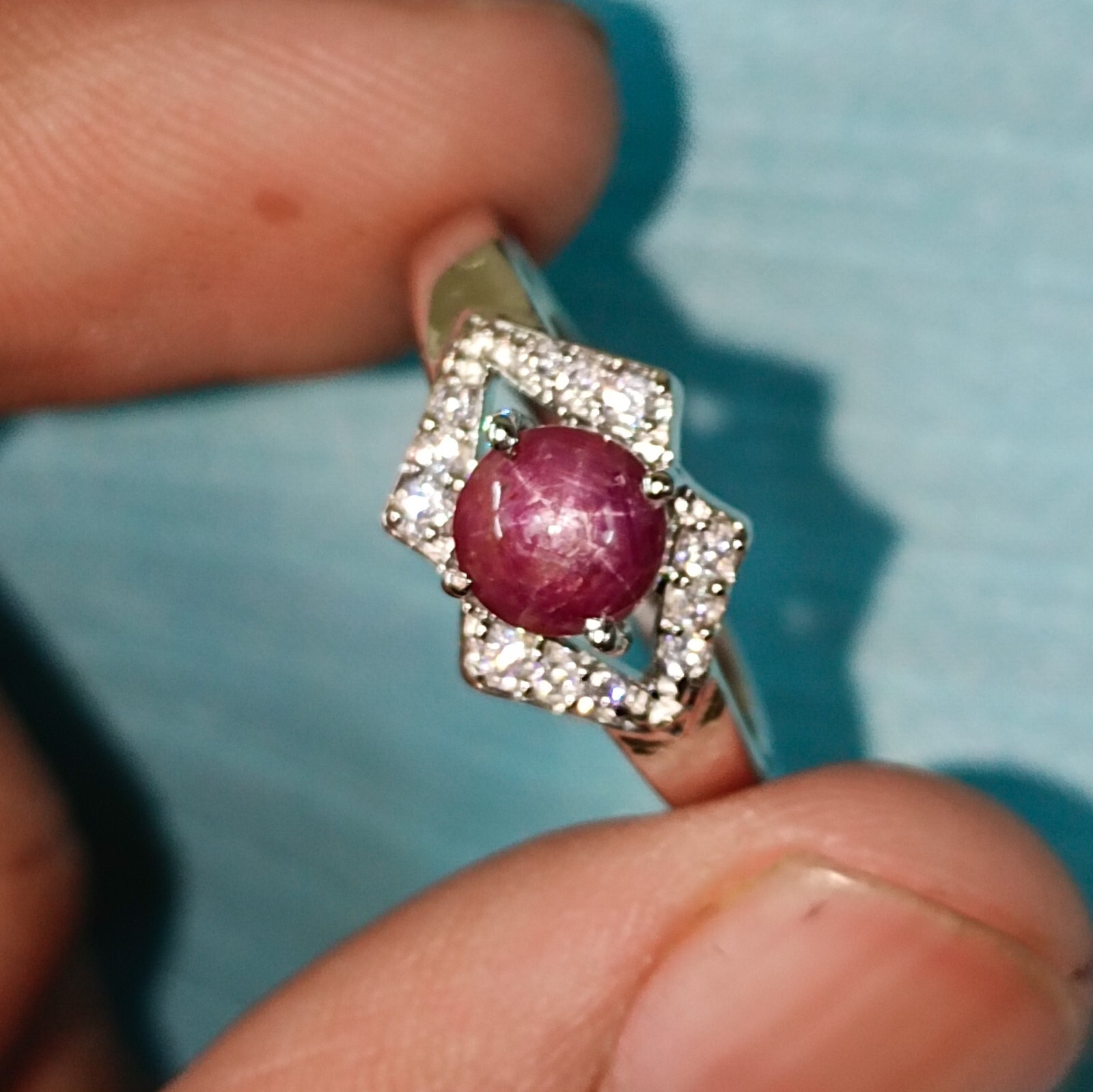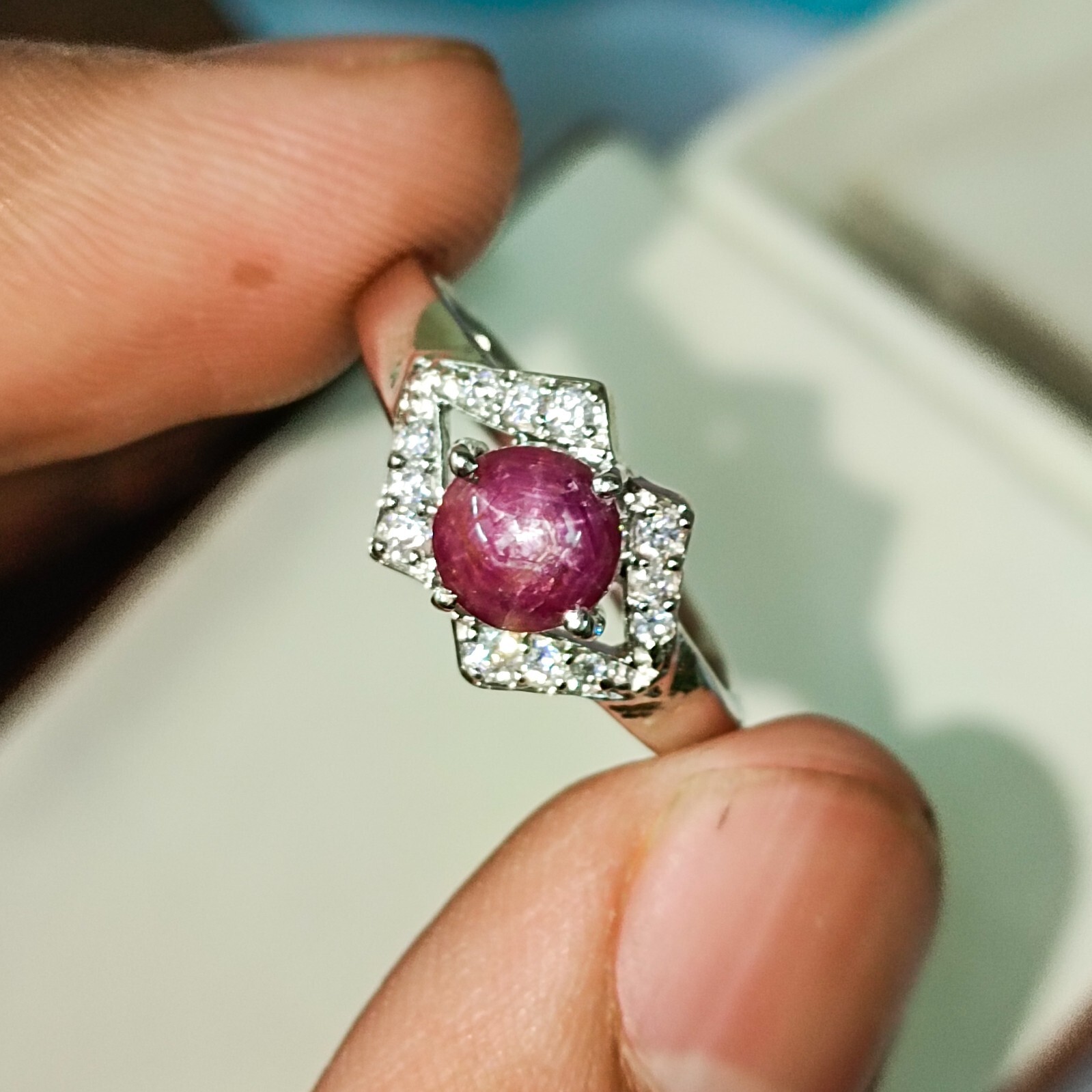 как выглядит Natural Star Ruby Ring 925 Sterling Silver With Cubic Zirconia Side Stones фото