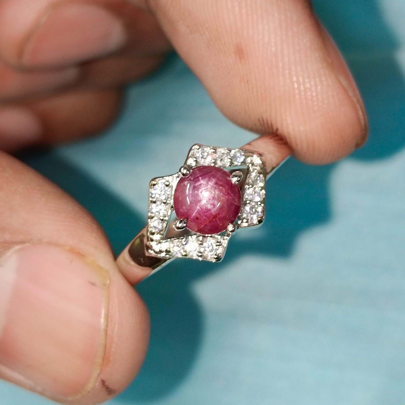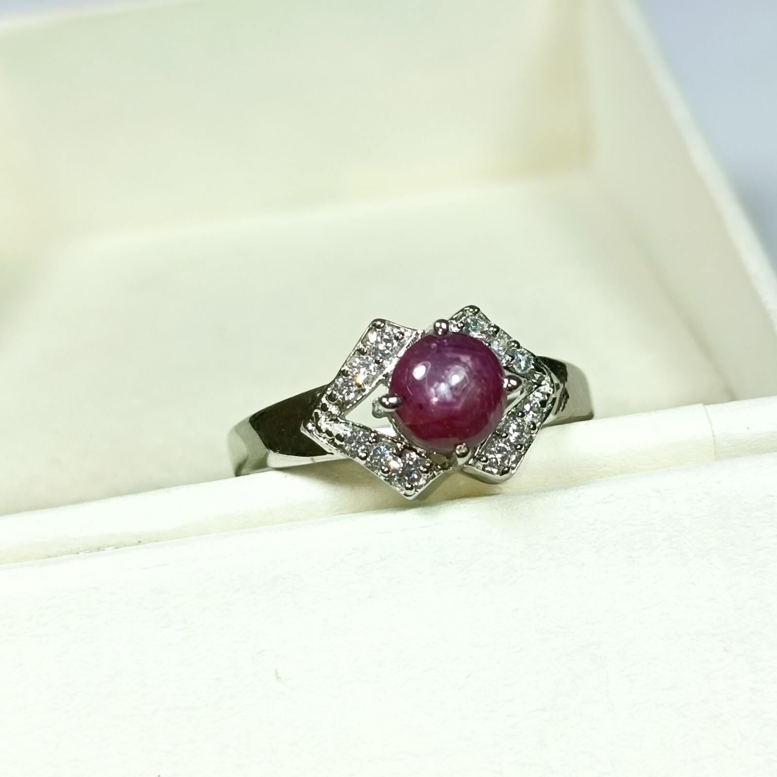 Natural Star Ruby Ring 925 Sterling Silver With Cubic Zirconia Side Stones