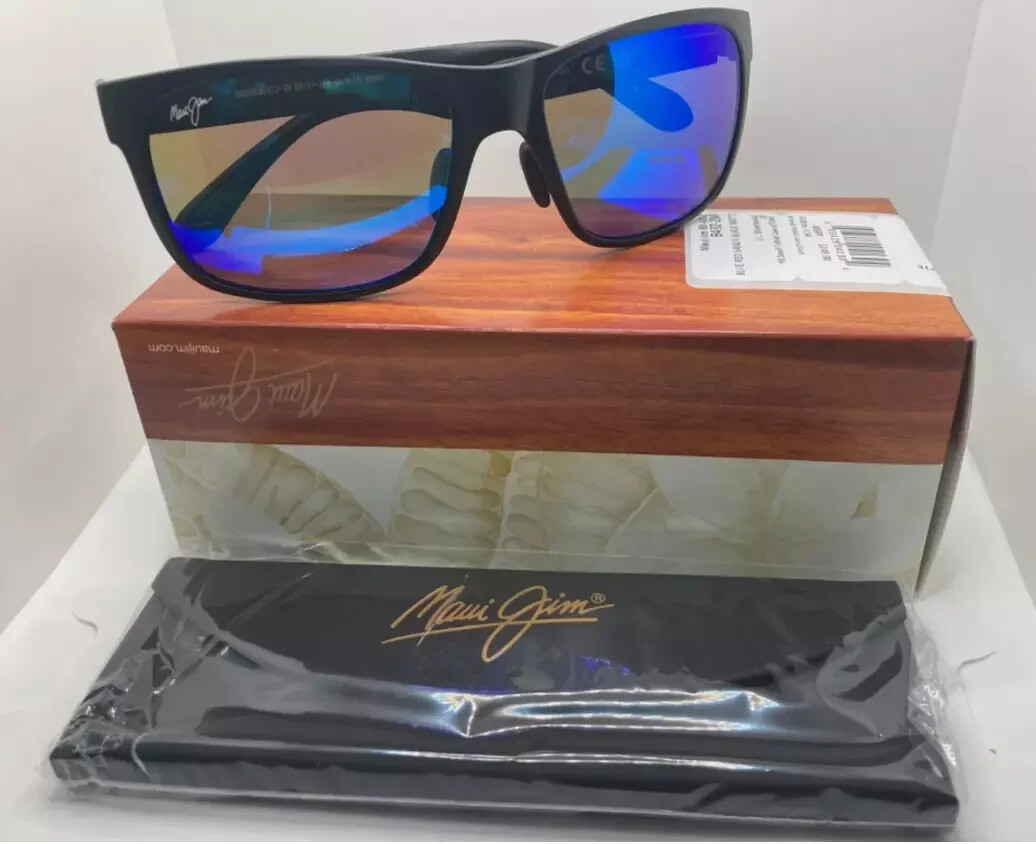 MAUI JIM POLARIZED B432-2M Red Sands Blue Lens Black Matte Sunglasses Sport