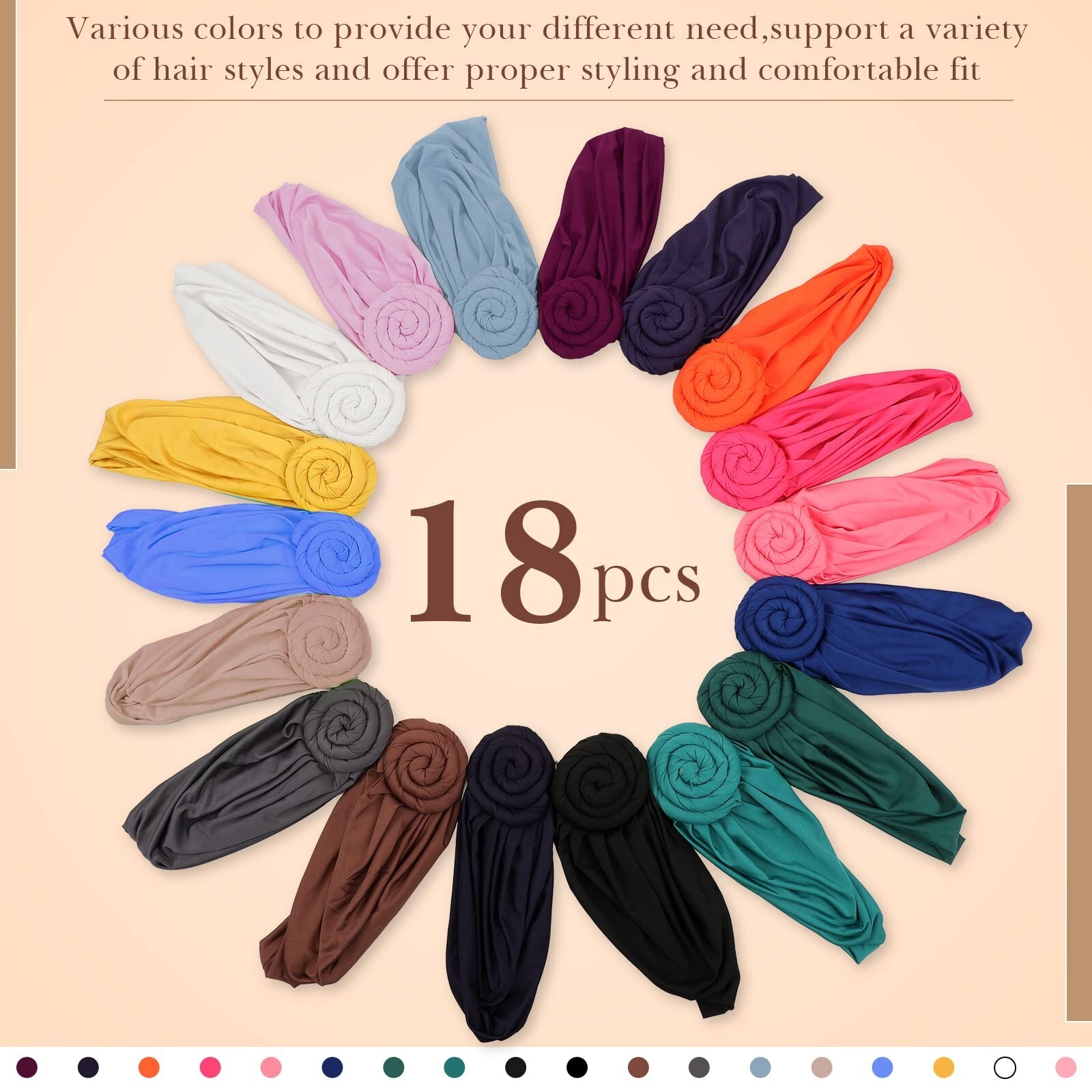 Jeyiour 18 Pcs Women Turban African Pre Tied Bonnet Hairwrap Flower Knot Bonn...