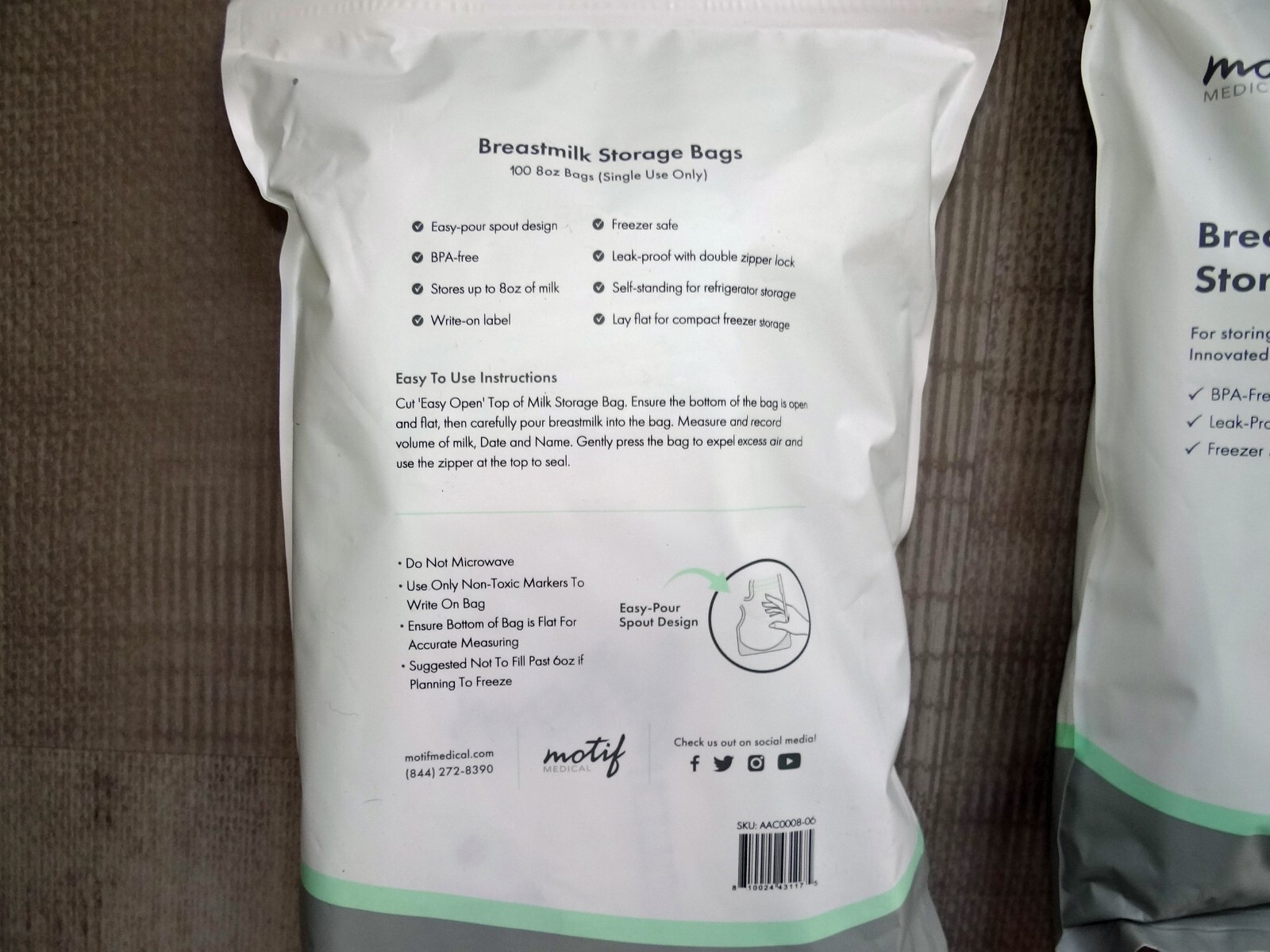 Lot of 4 Motif Medical Breast Milk Storage Bags 8 oz Single Use Bags 400 Count