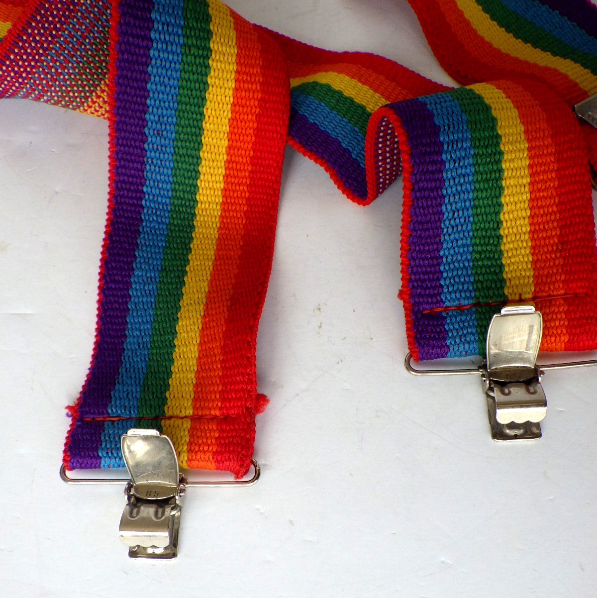 Rainbow Colors Adjustable Suspenders Metal Clips Gay Pride Honcho