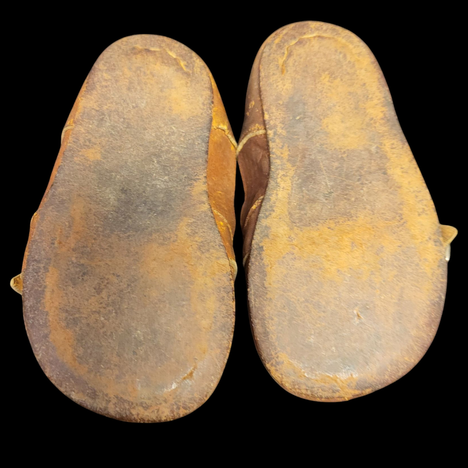 Antique Girls Mary Jane Shoes Brown Leather T-Strap Round Toe Retro Germany