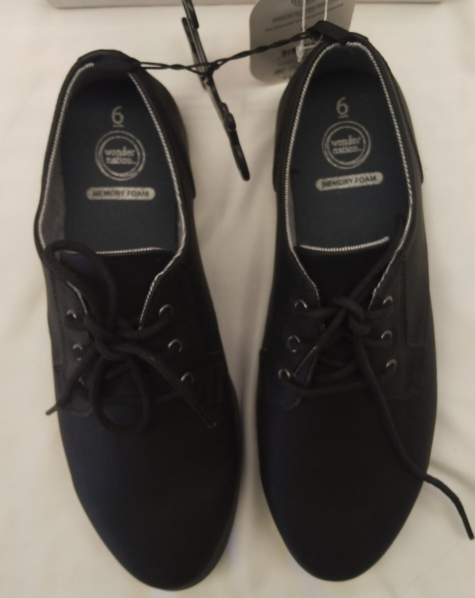 Youth Boys Wonder Nation Memory Foam Black Oxford Dress Shoes Size 6 New W/ Tag