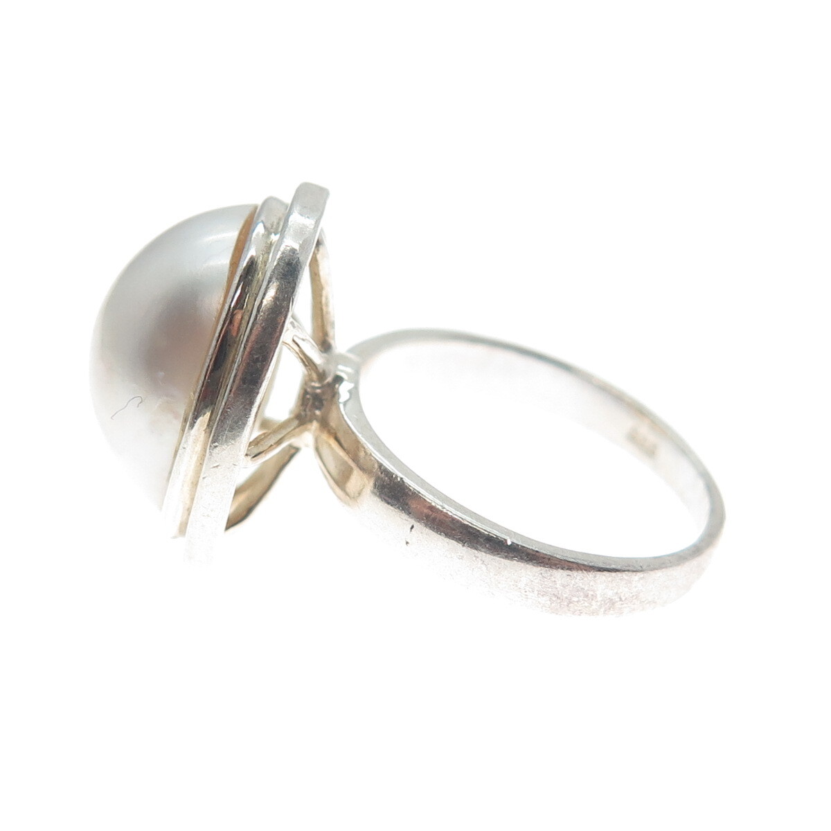 925 Sterling Silver Vintage Real Pearl Oxidized Ring Size 5.25
