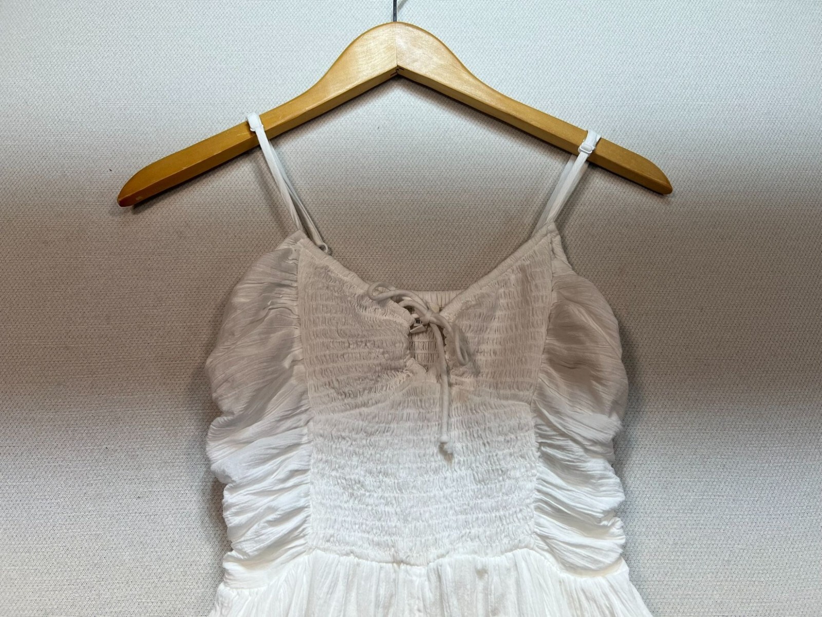как выглядит Aerie Womens Gauzy Smocked Romper Shorts Tank Size XS White Coastal Beach фото