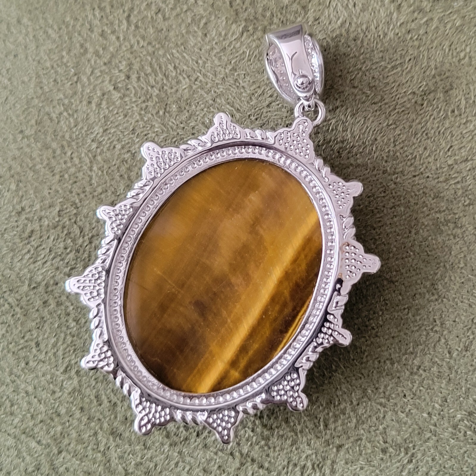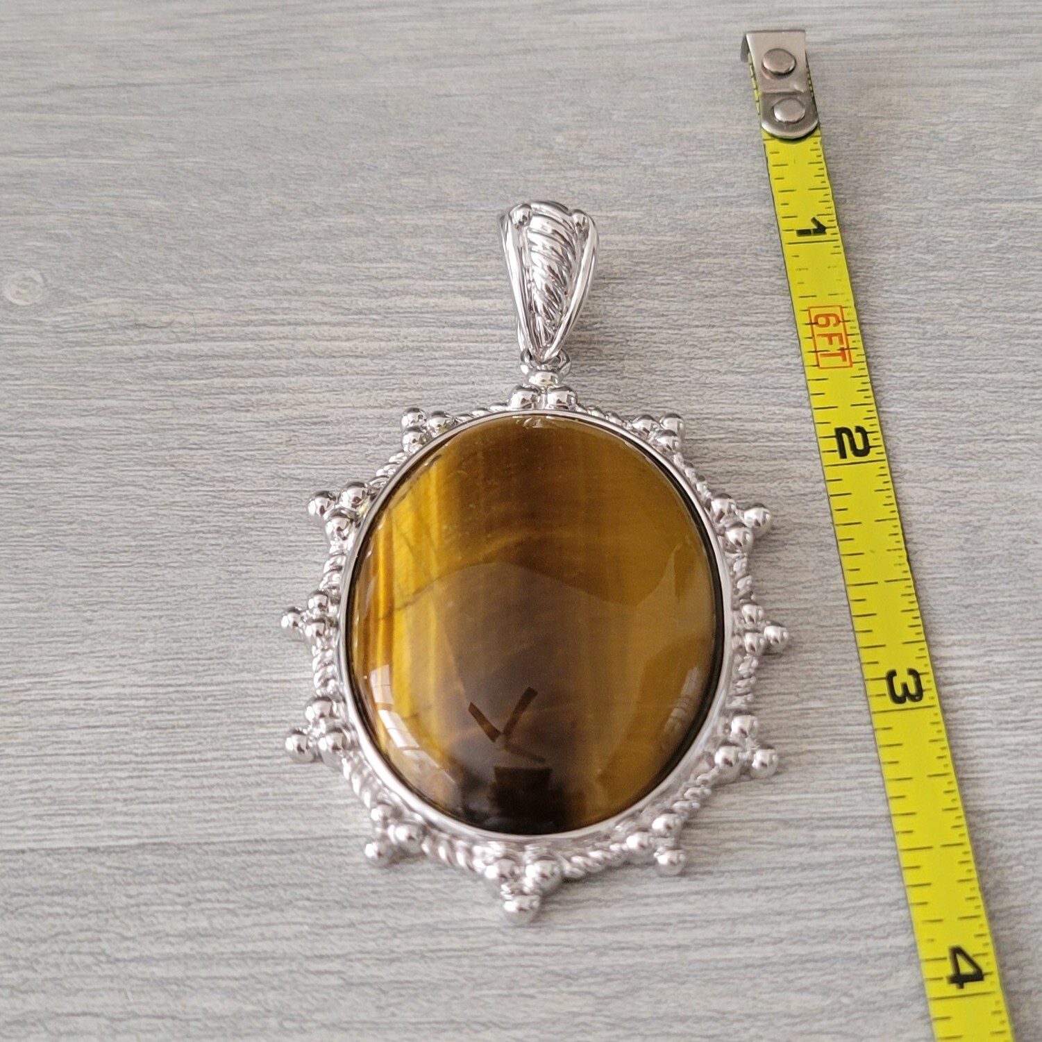 Large Pendant Sterling Silver 925 Tigers Eye Round Pendant NWOT