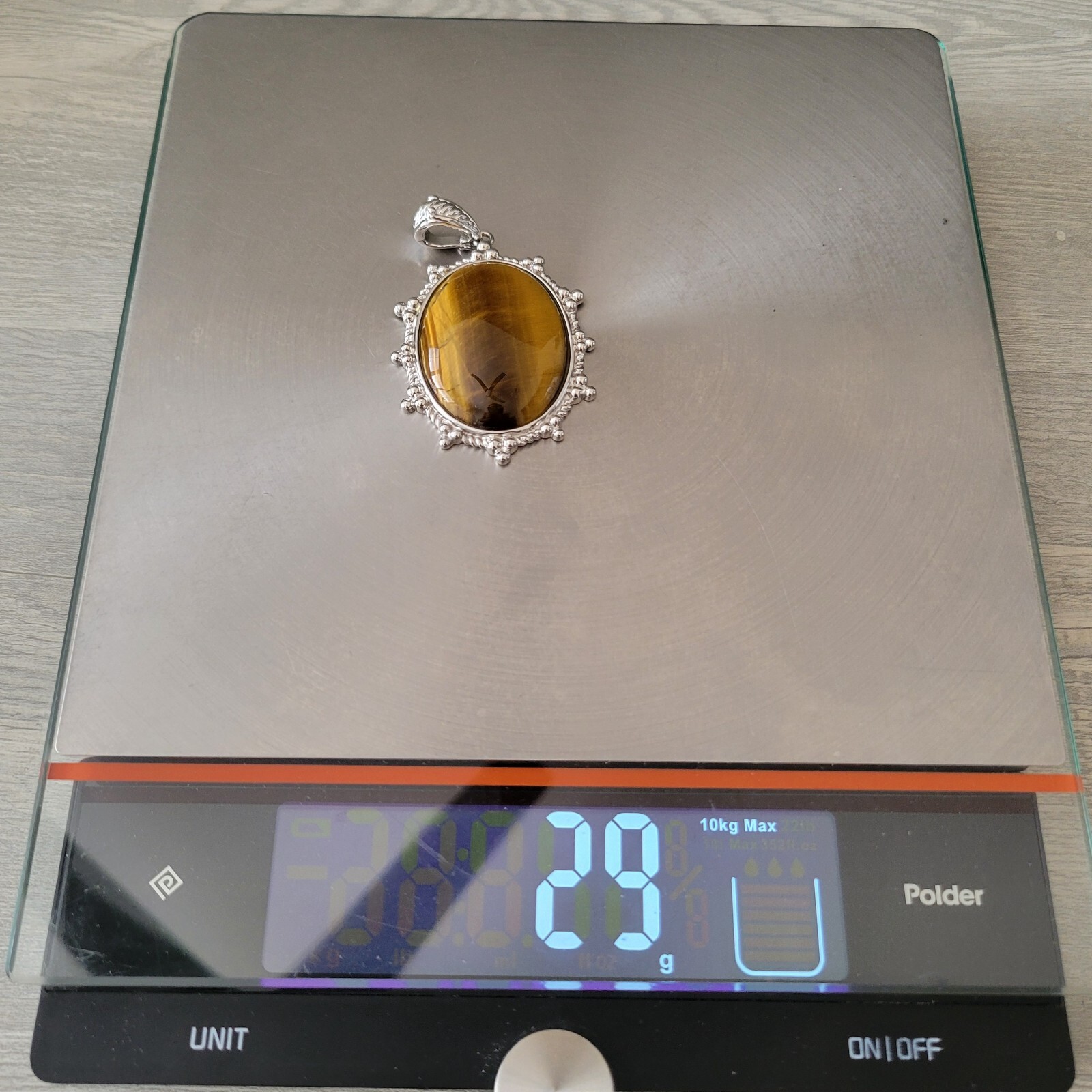 как выглядит Large Pendant Sterling Silver 925 Tigers Eye Round Pendant NWOT фото