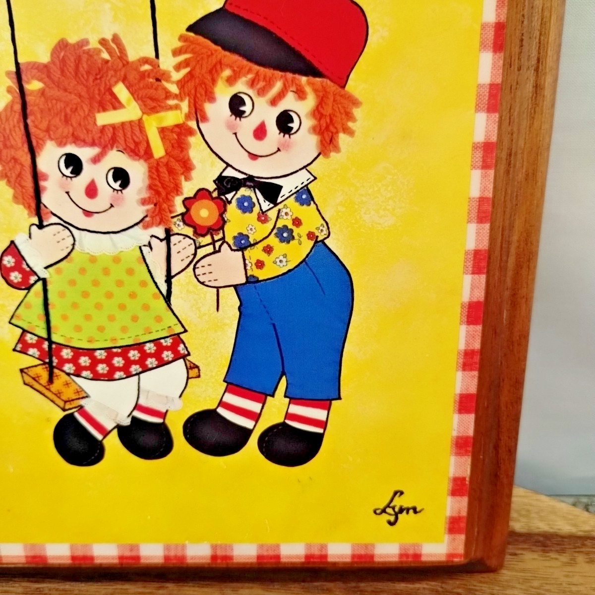 как выглядит Vtg Raggedy Ann And Andy Prints On Very Nice Wood Plaques Set Of 2 9" x 7" фото