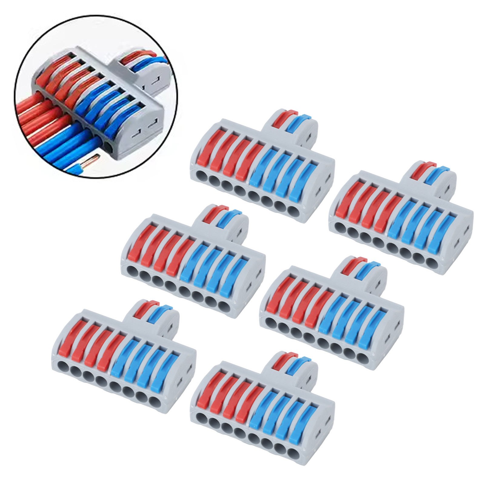 6PCS 2 In 8 Out Terminal Blocks 8 Way Butt Terminals Lever Electrical Wire.