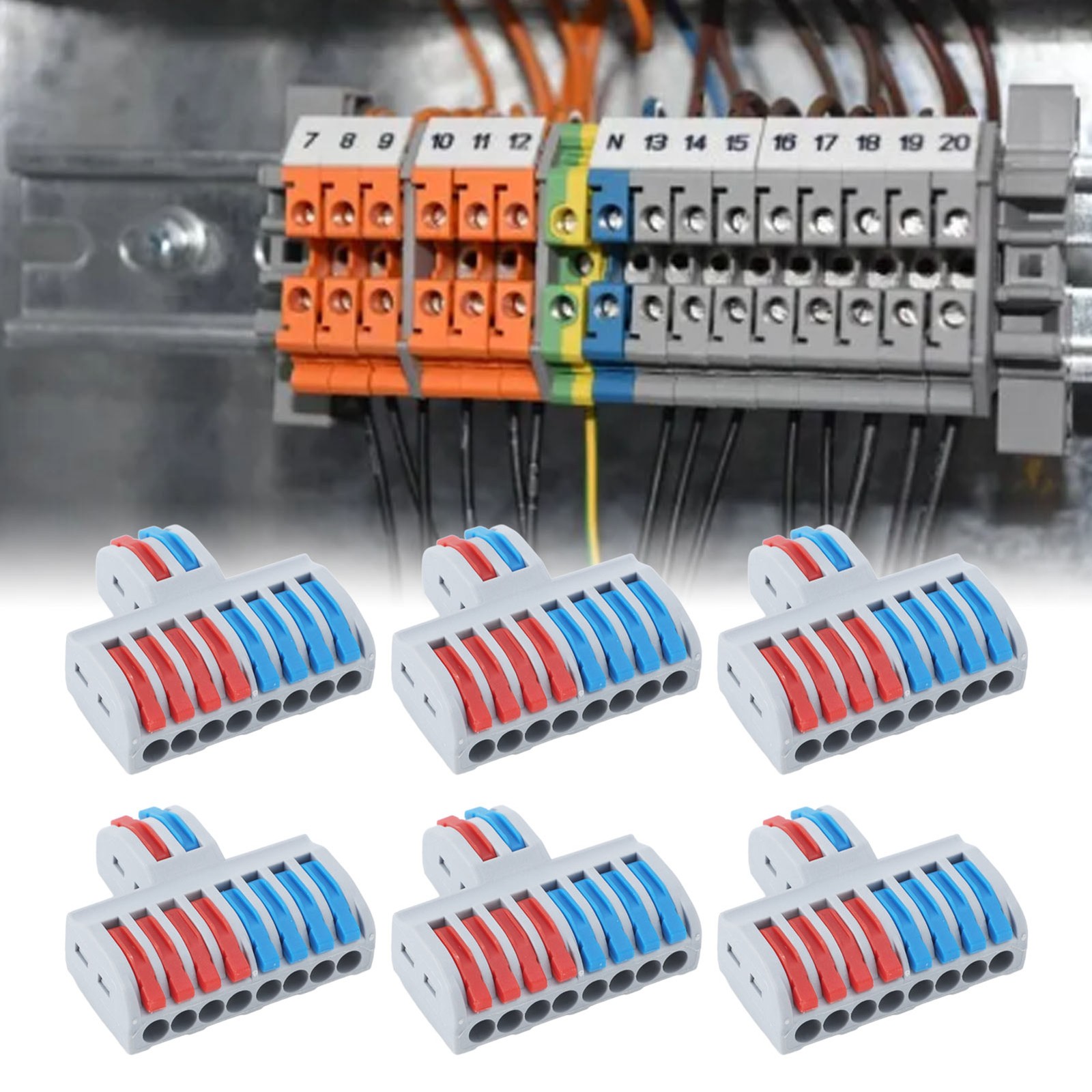 как выглядит 6PCS 2 In 8 Out Terminal Blocks 8 Way Butt Terminals Lever Electrical Wire. фото