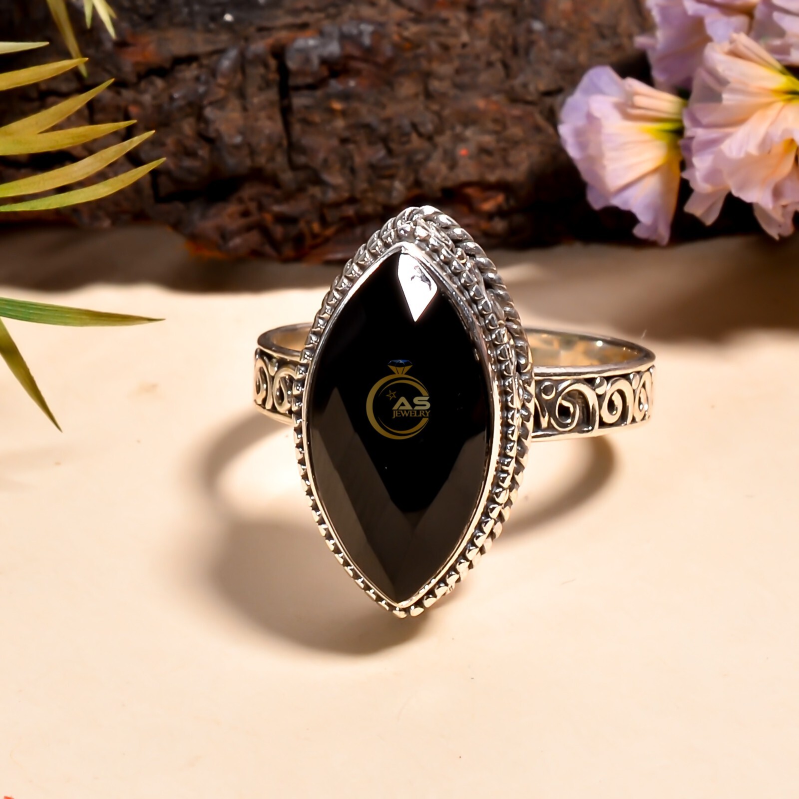 как выглядит Black Onyx Cut Stone Ring 925 Sterling Silver Handmade Design Statement Rings фото