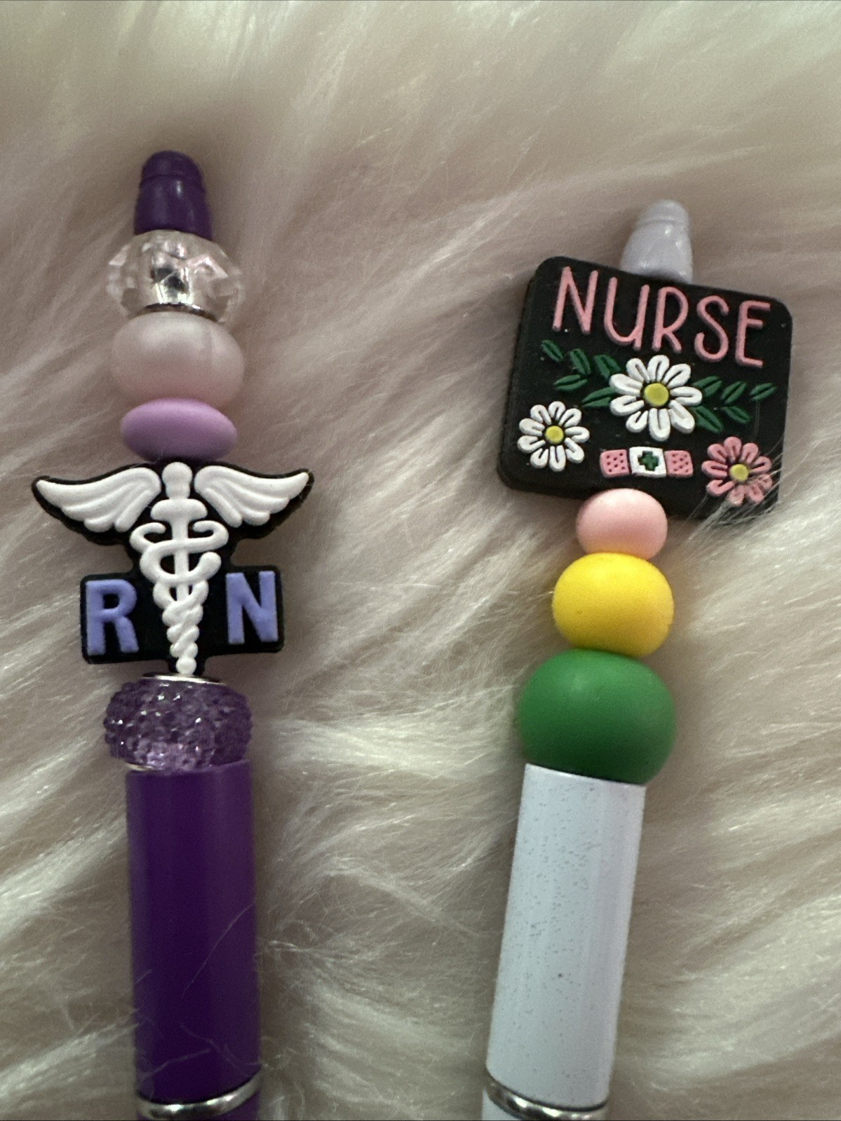 • Nurse Focal Beaded Ink Pens Silicone Nurse Life Handmade Set Of Two