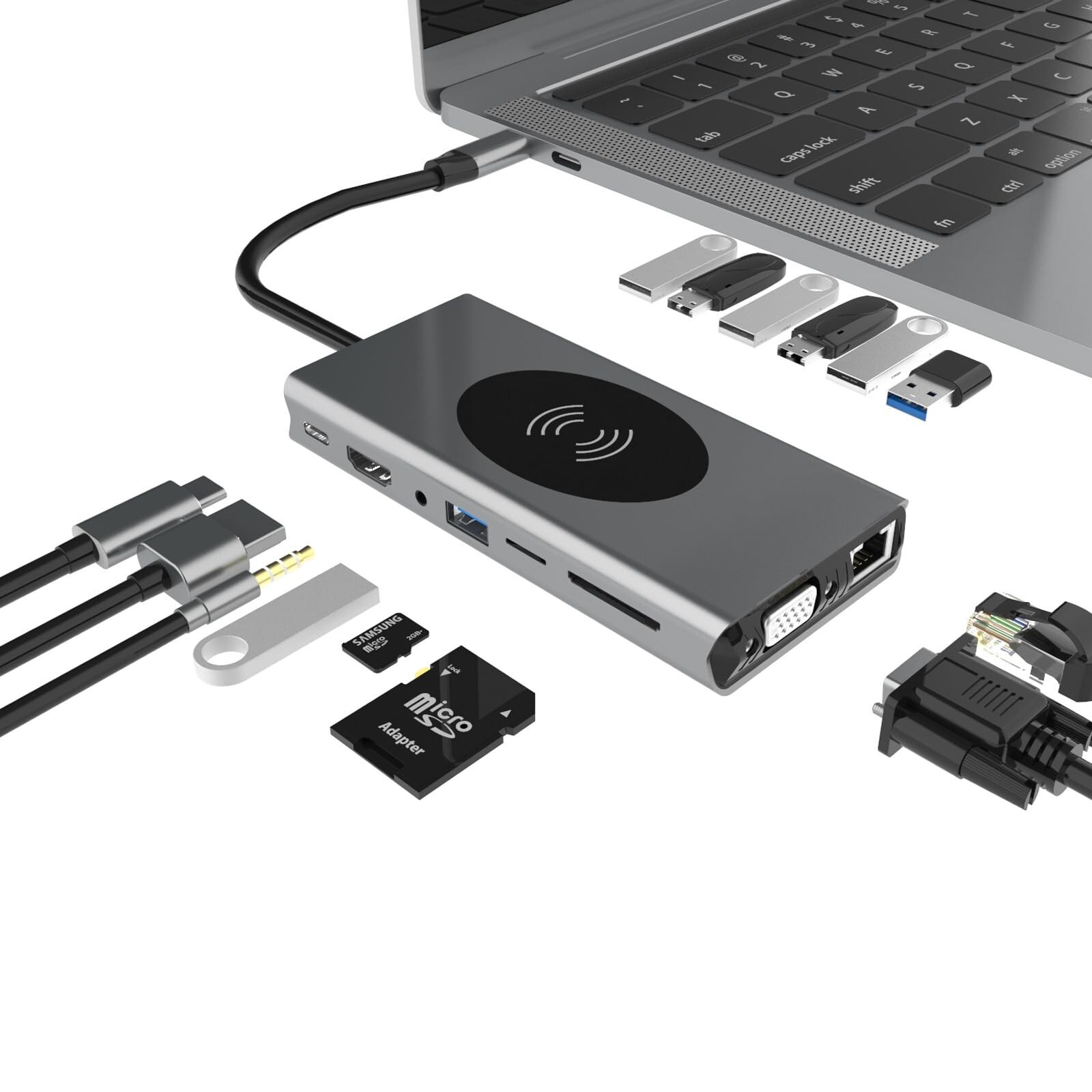 как выглядит 15-in-1 USB-C Docking Station with 4K HDMI, Wireless Phone Charger, for MacBo... фото