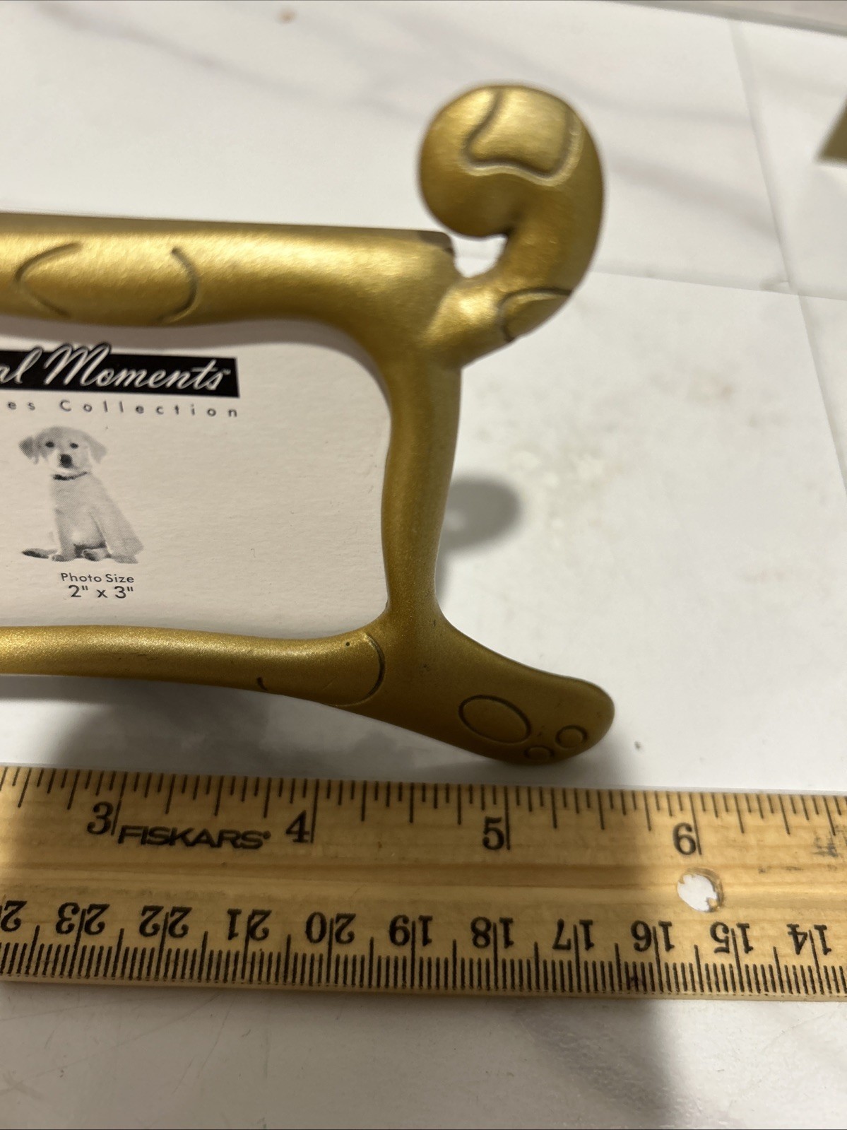 Set Of 3 Gold Tone Metal Special Moments Dog Picture Frames 2- 2 X 3 ,