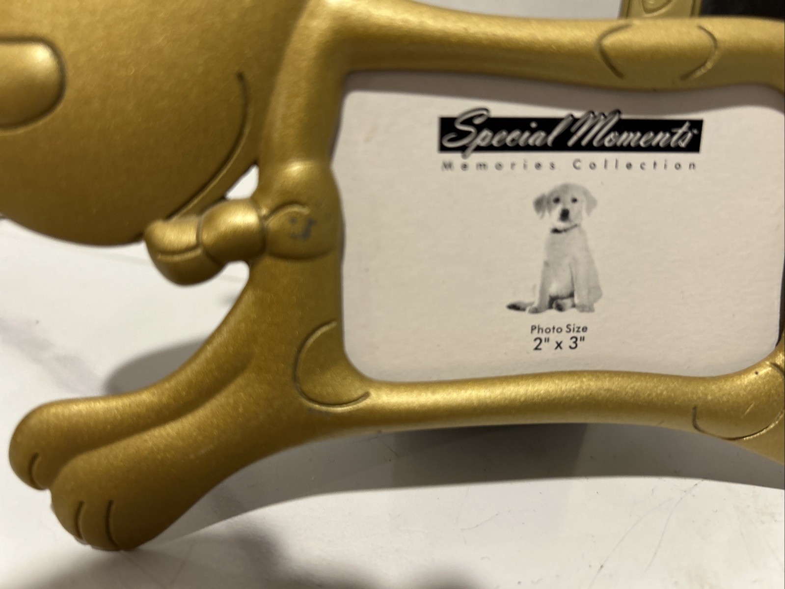 • Set Of 3 Gold Tone Metal Special Moments Dog Picture Frames 2- 2 X 3 ,