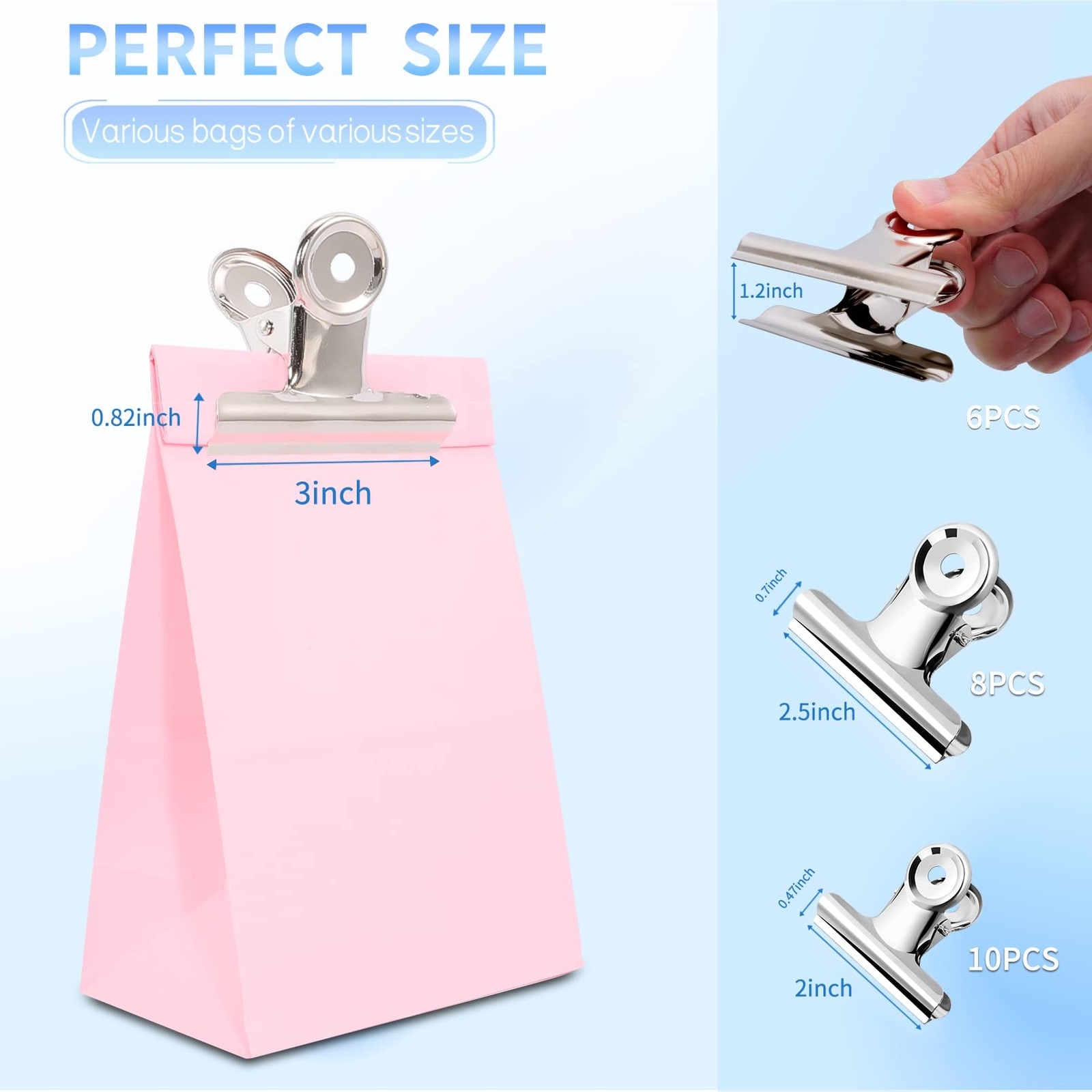24 Pack Large Metal Hinge Clips,3 Sizes Bulldog Clips,Large Bull Clips,Stainl...