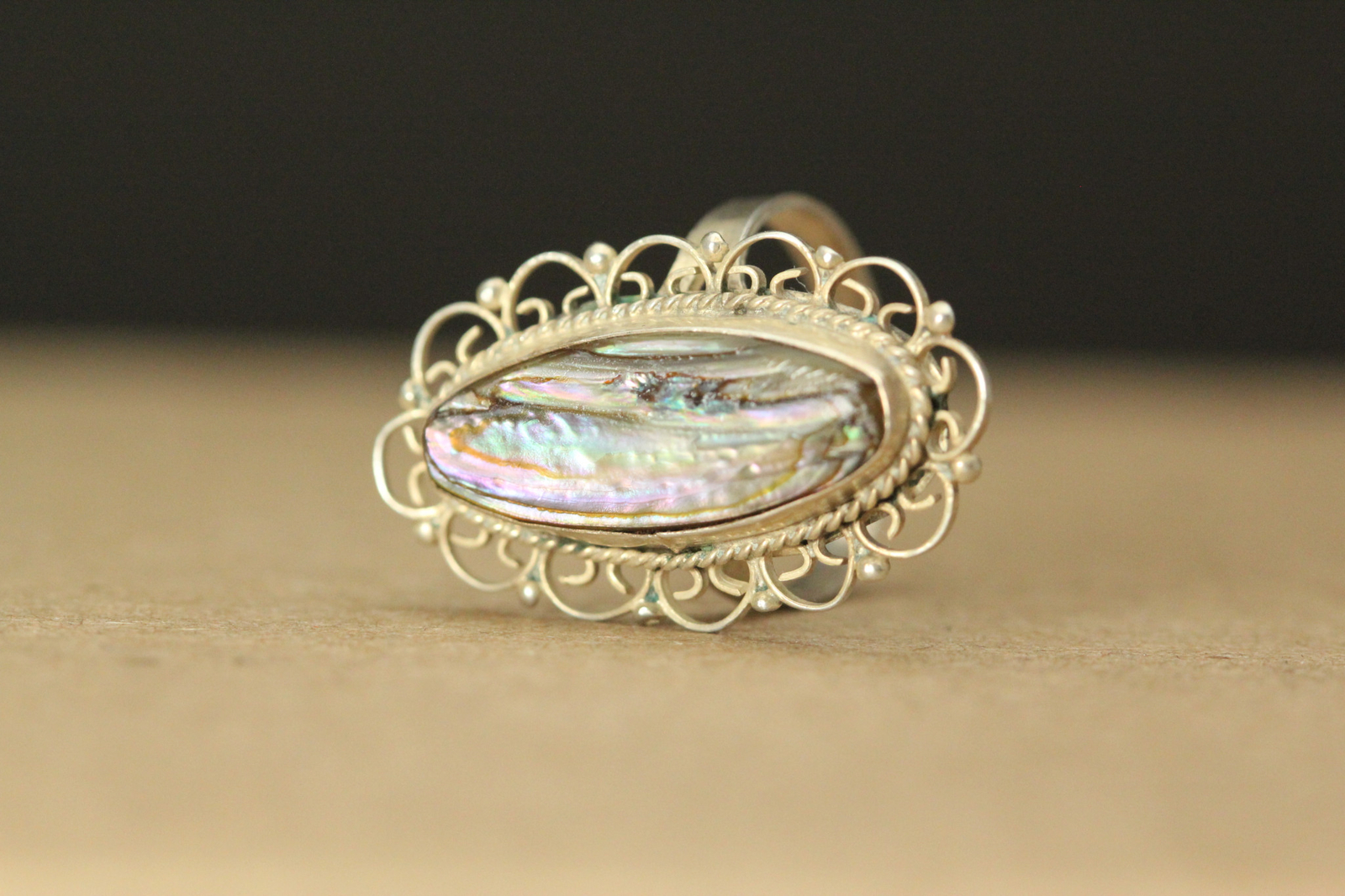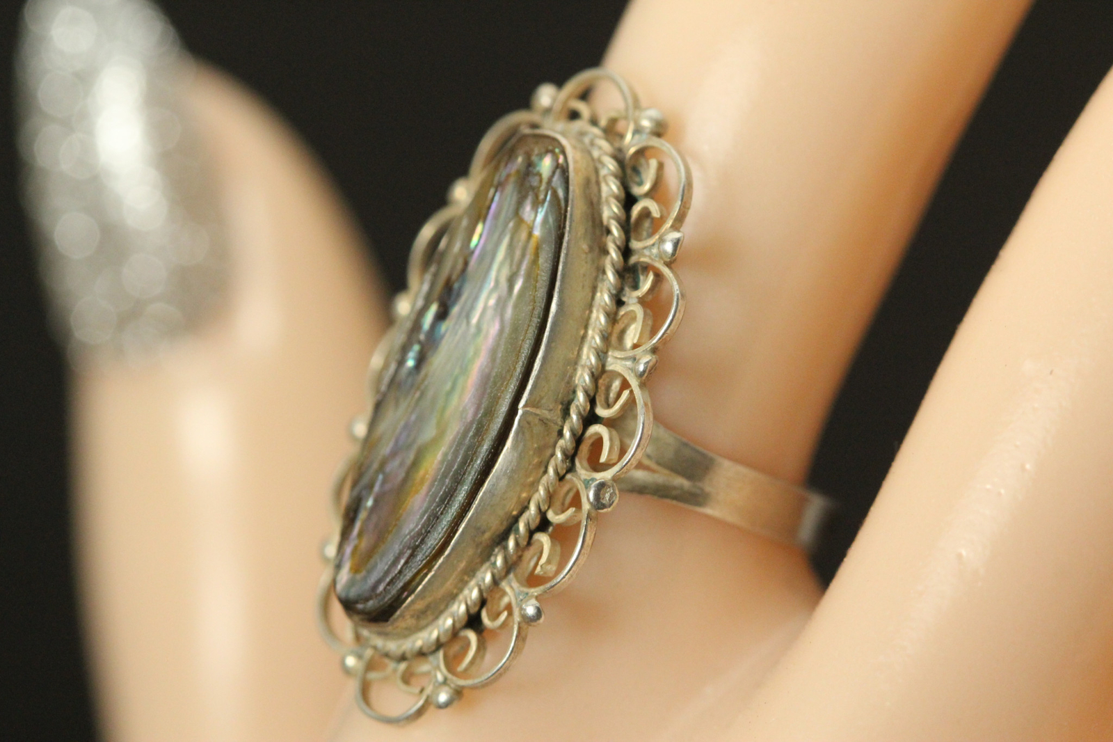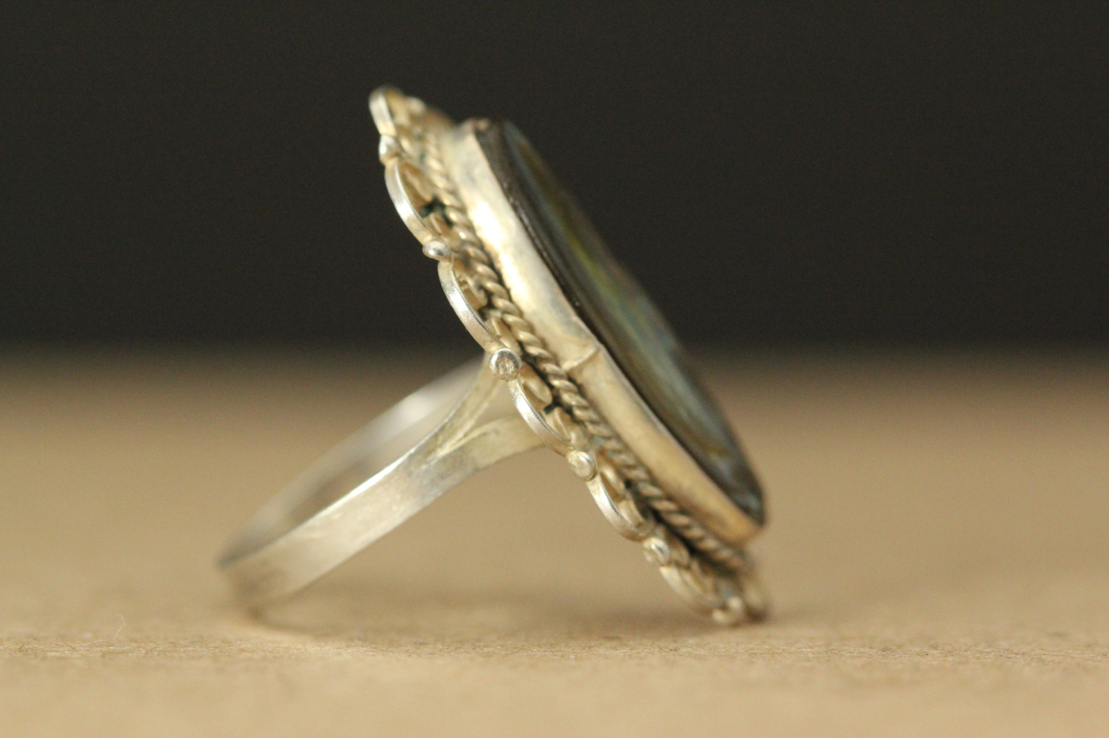 Vintage Oblong Paua Shell Sterling Silver 925 Ring size 5.75, 3.1 grams RIN9406