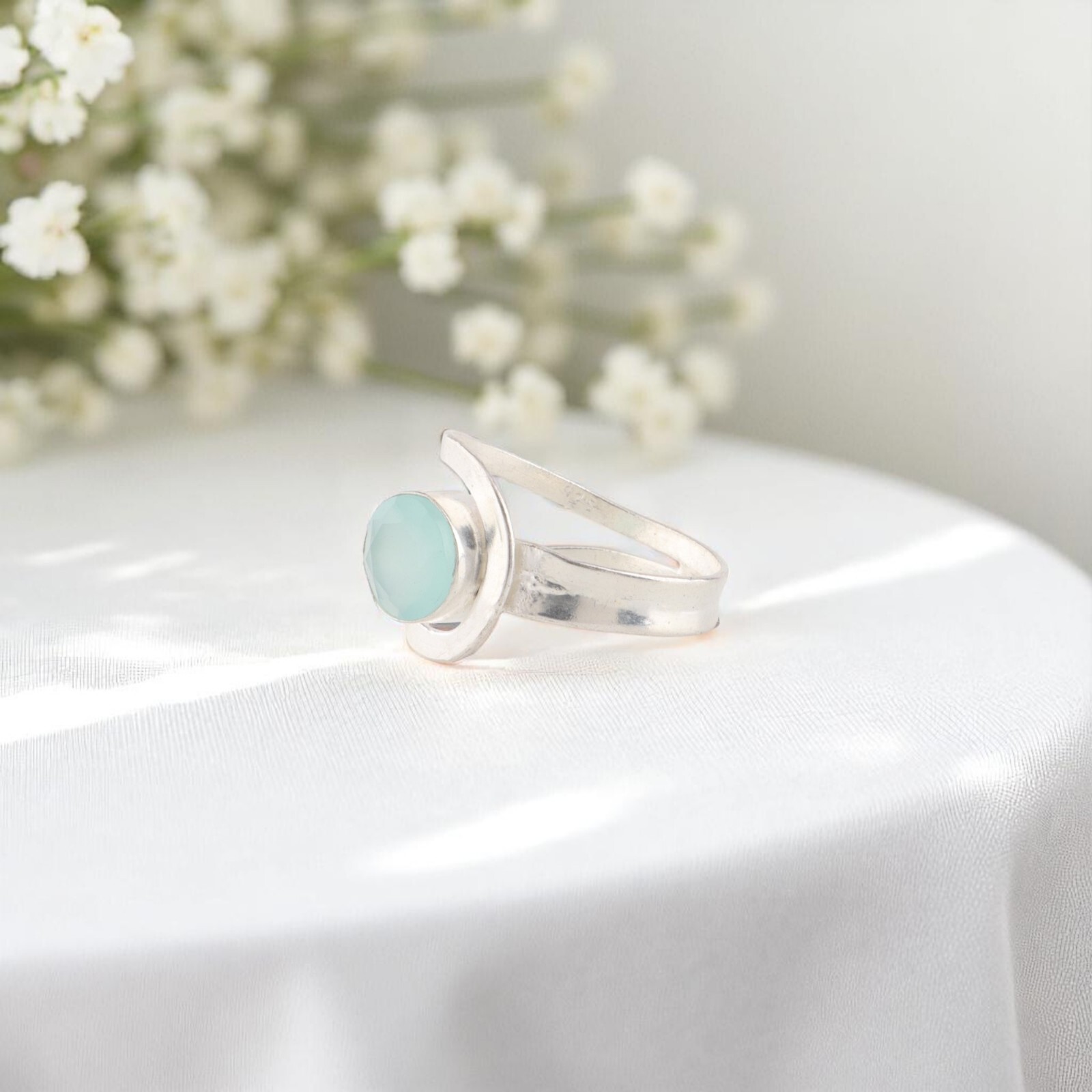 как выглядит Aqua Chalcedony Gemstone 925 Sterling Silver Statement Jewelry Ring Gift For Her фото