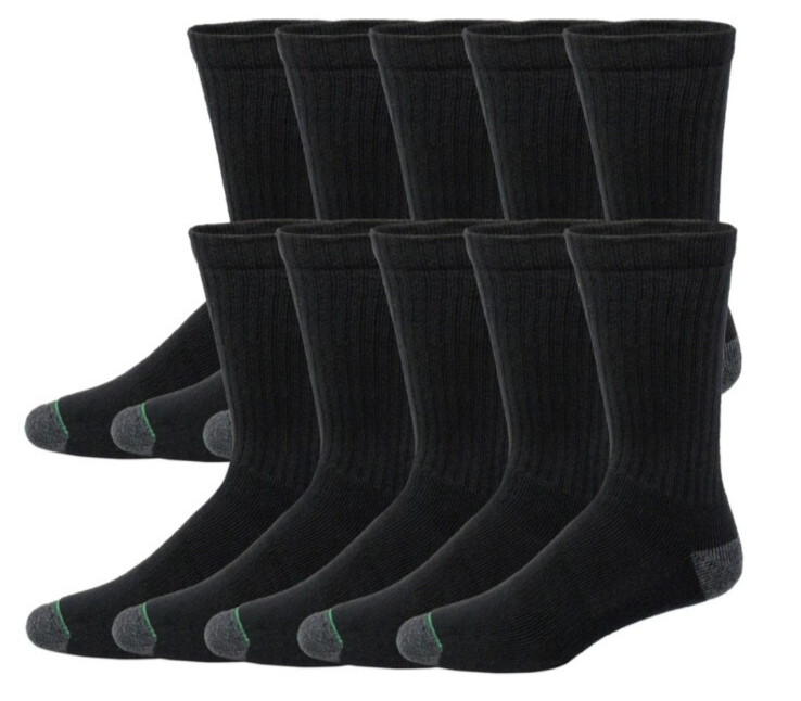 10 Pairs - Men's Reinforced Crew Socks Sizes 6-12 BLACK Unisex - NEW