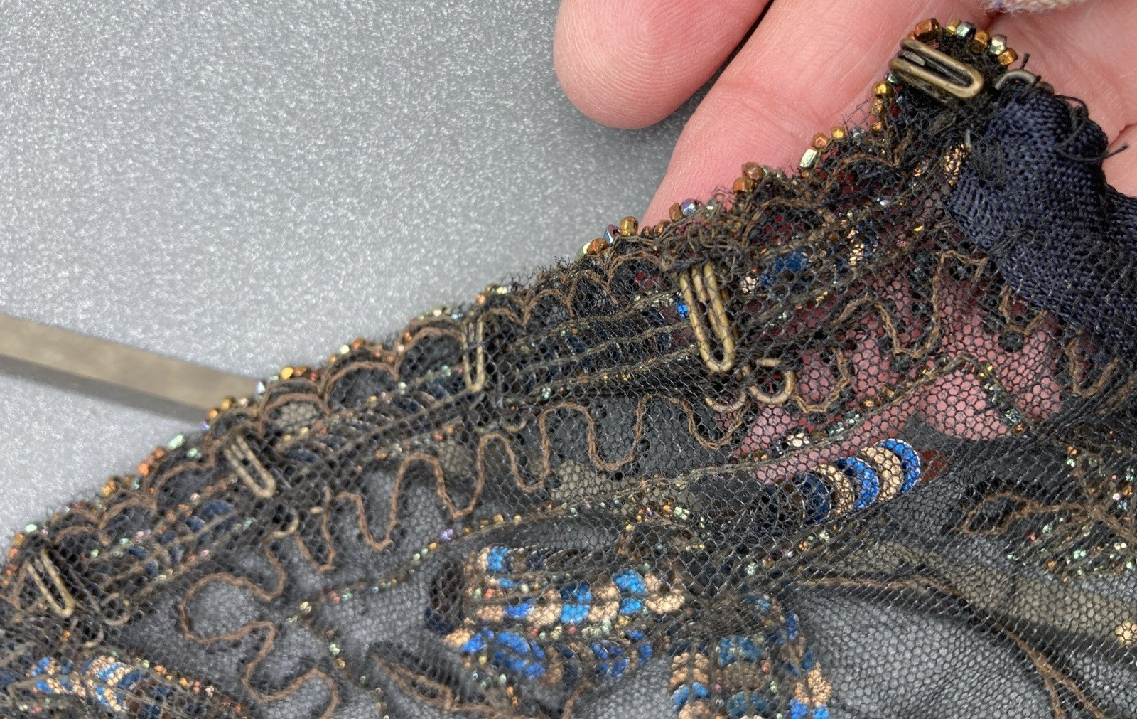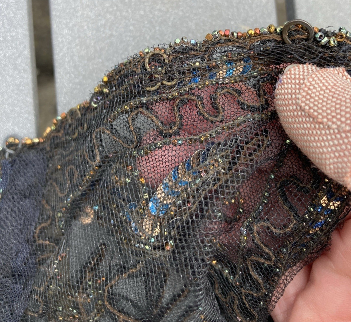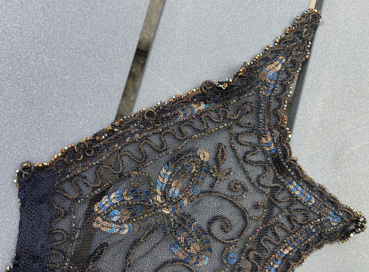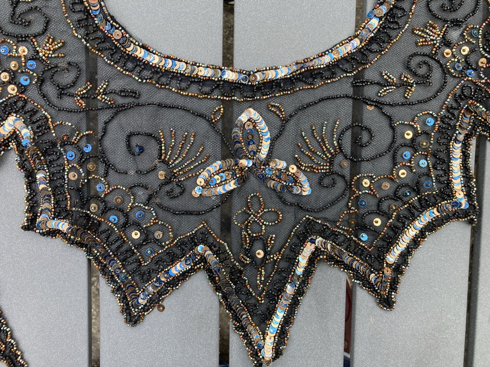 Vintage beaded mesh collar gothic bat shaped sequined gold blue black costume